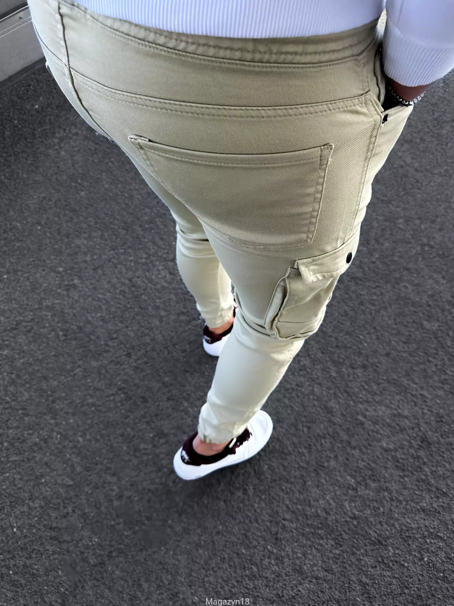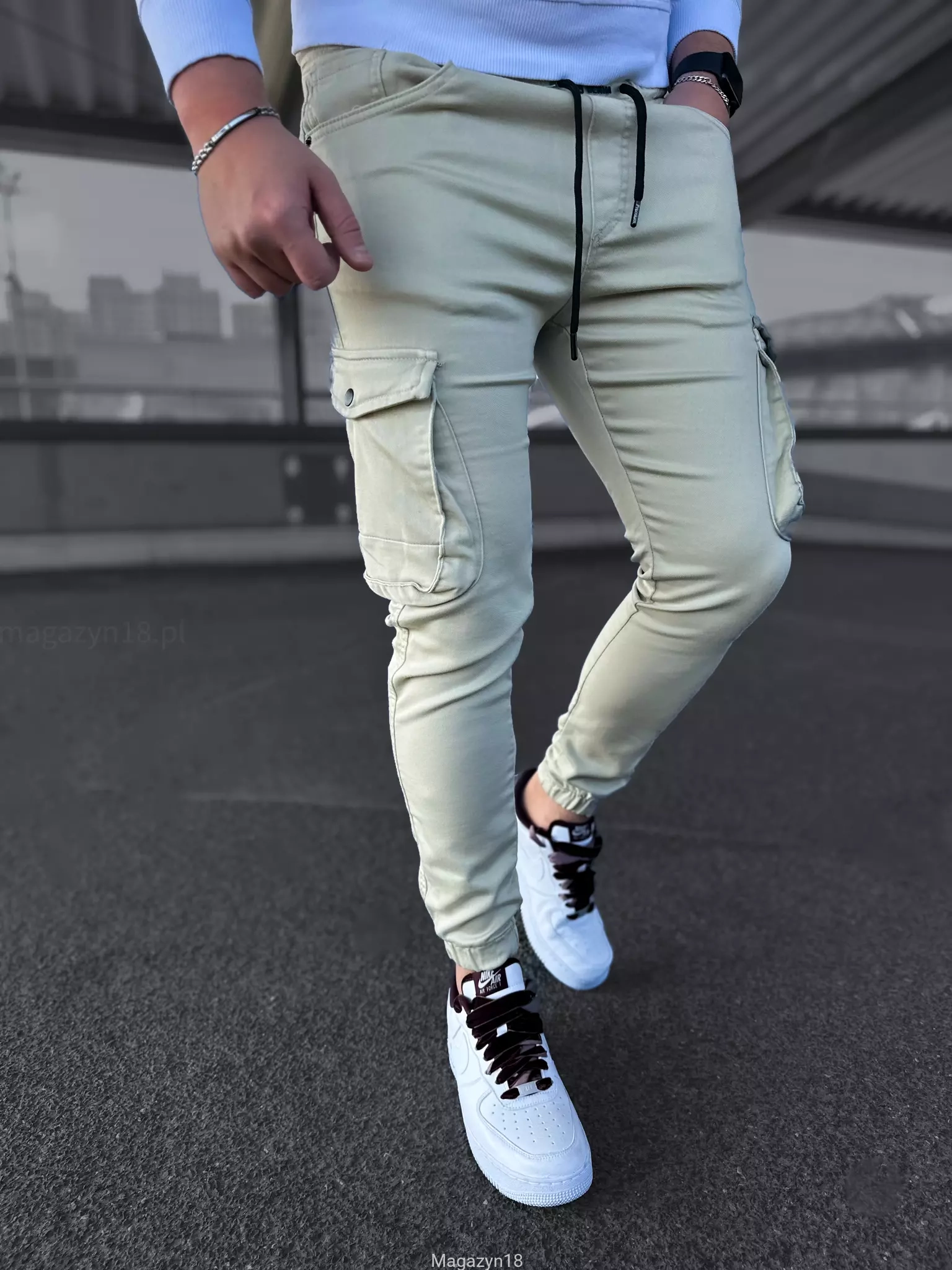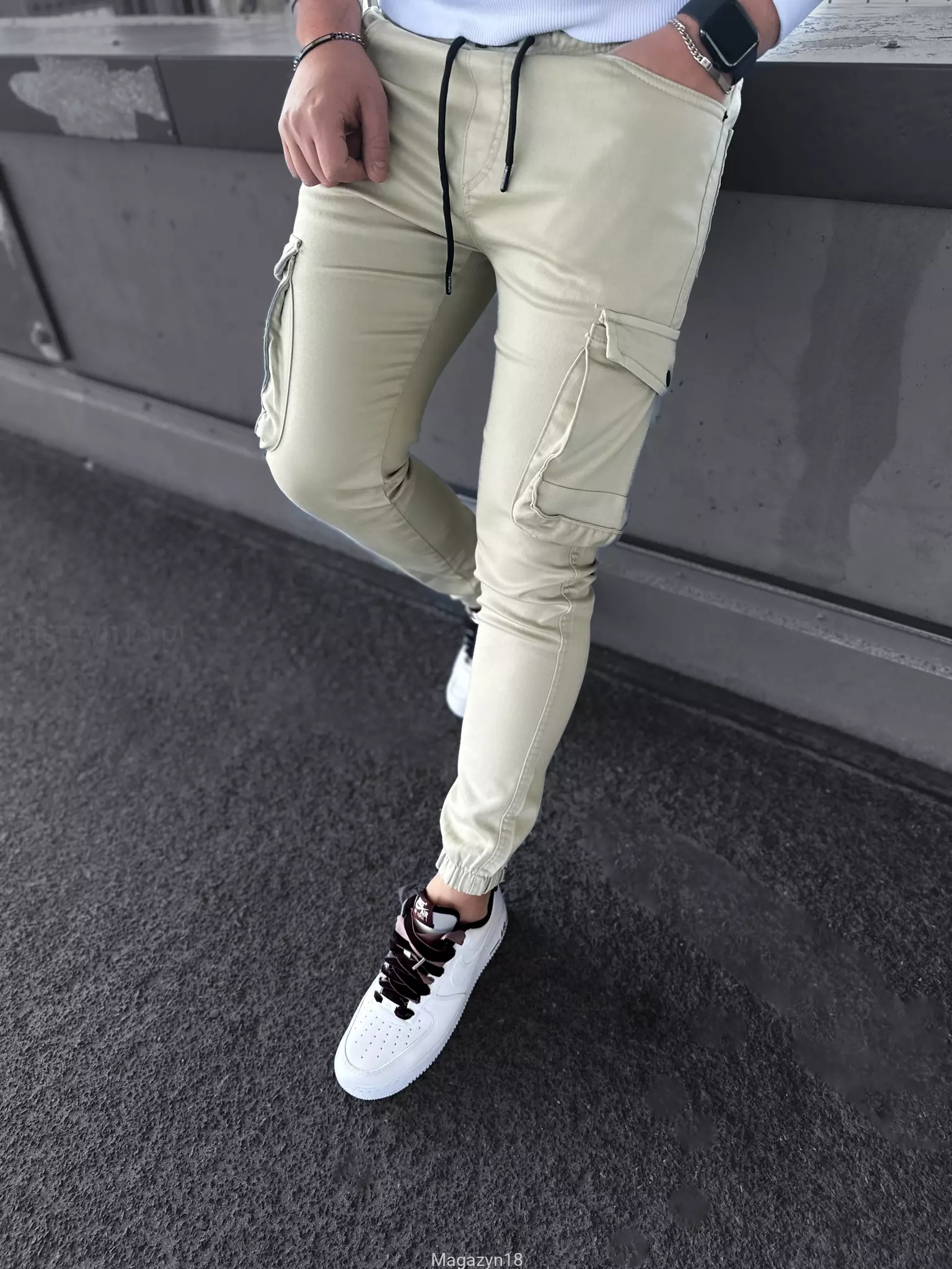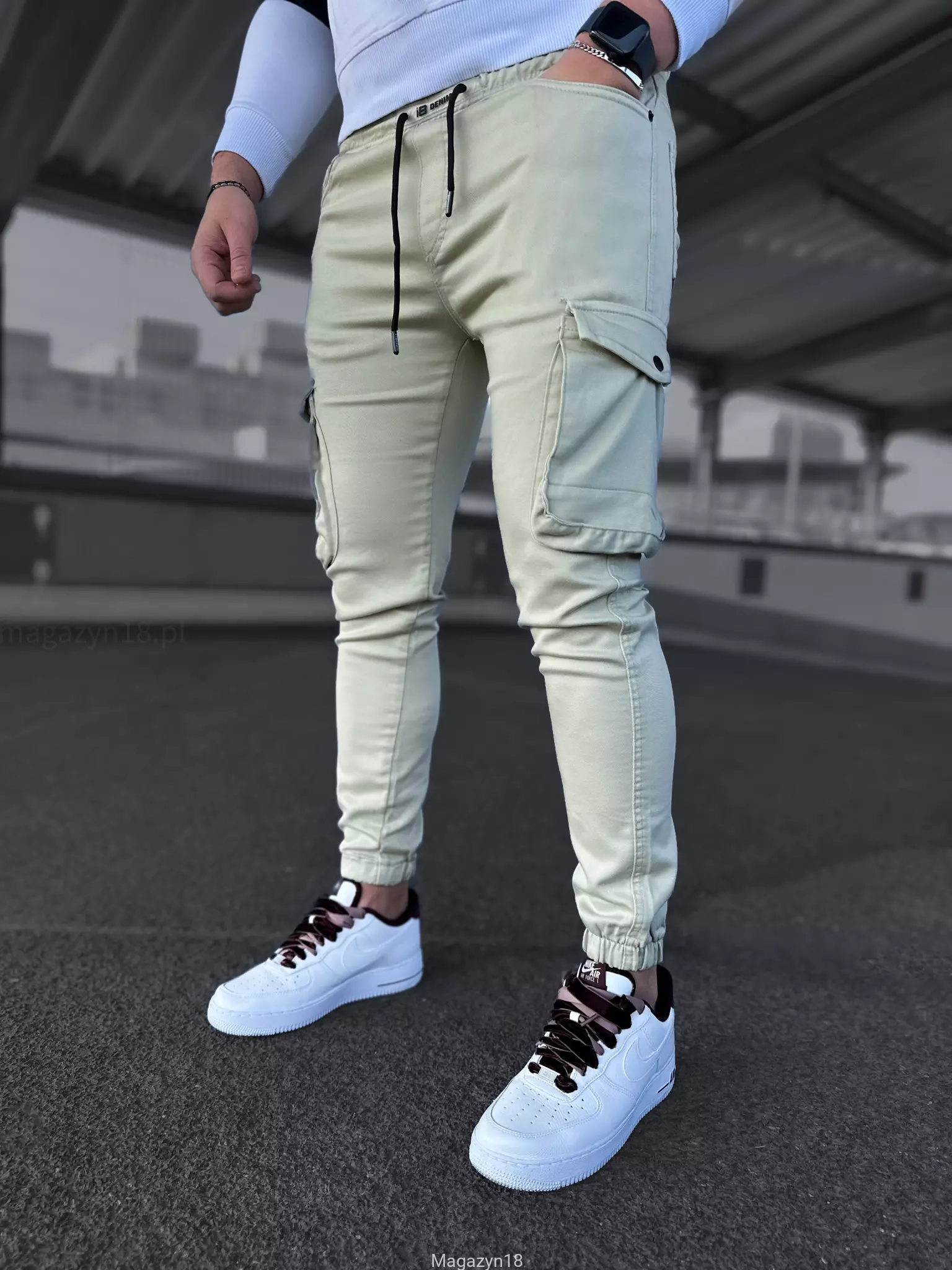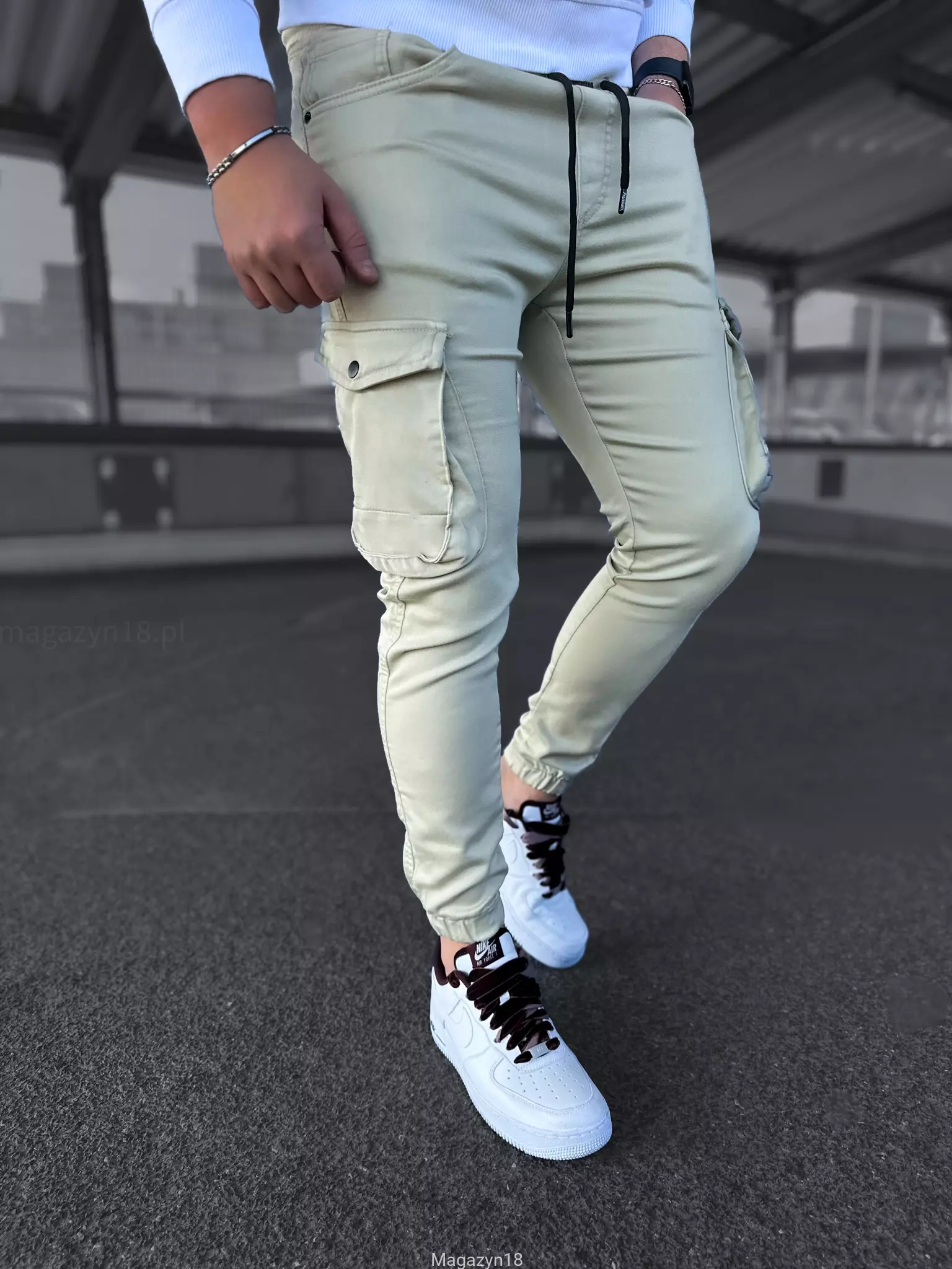 Bojówki męskie beżowe spodnie joggery 106-4b