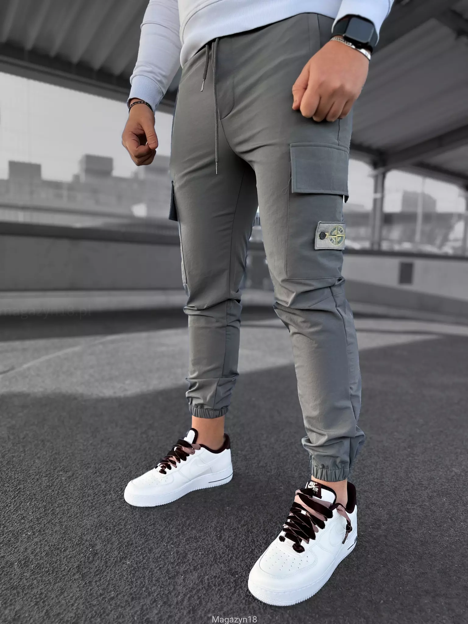 Bojówki męskie szare spodnie joggery 5011s