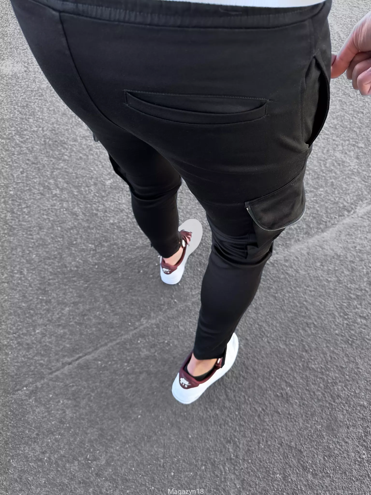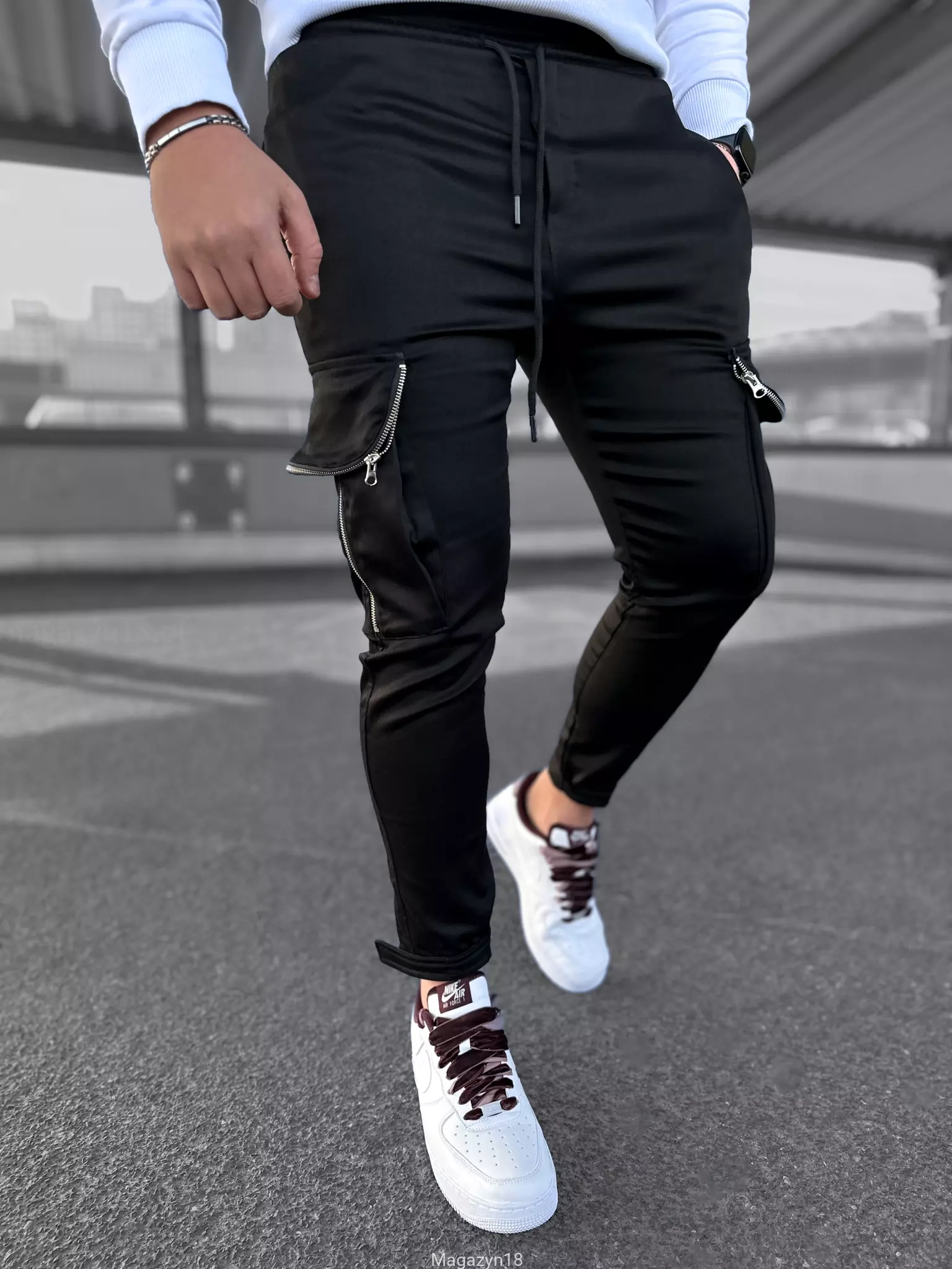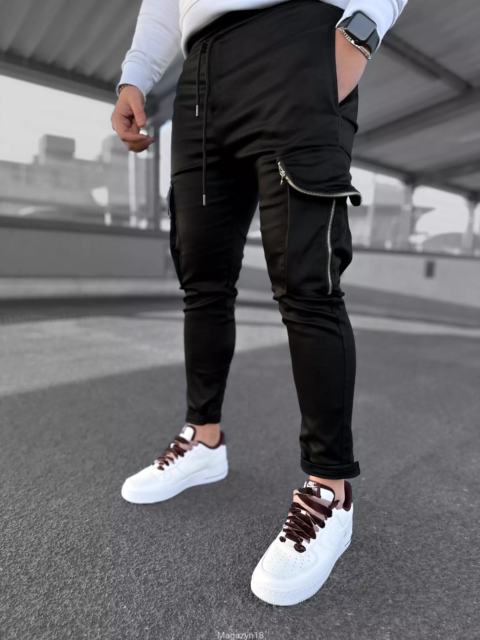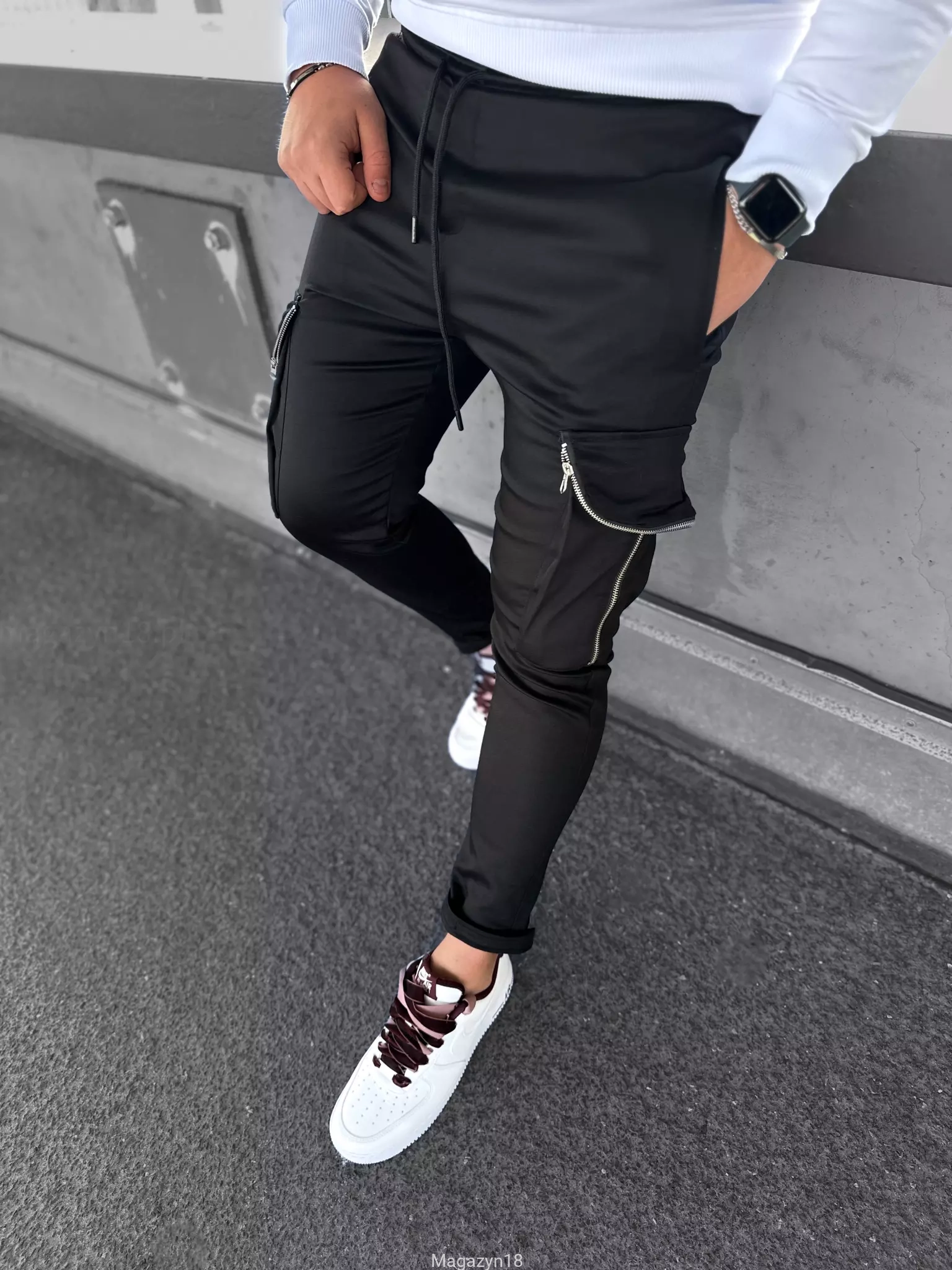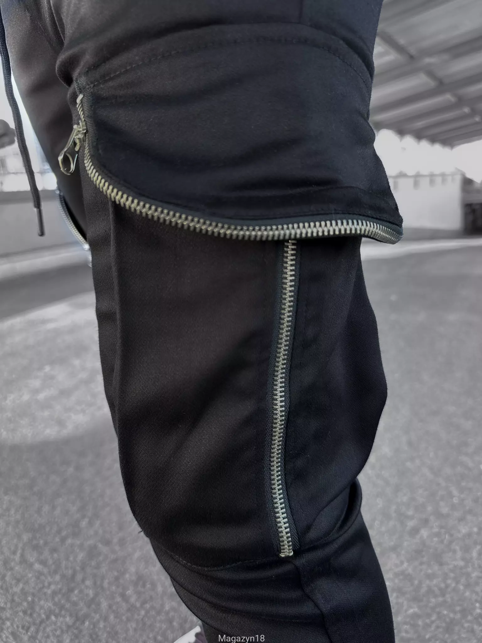 Joggery męskie czarne spodnie z suwakami 3056c bojówki
