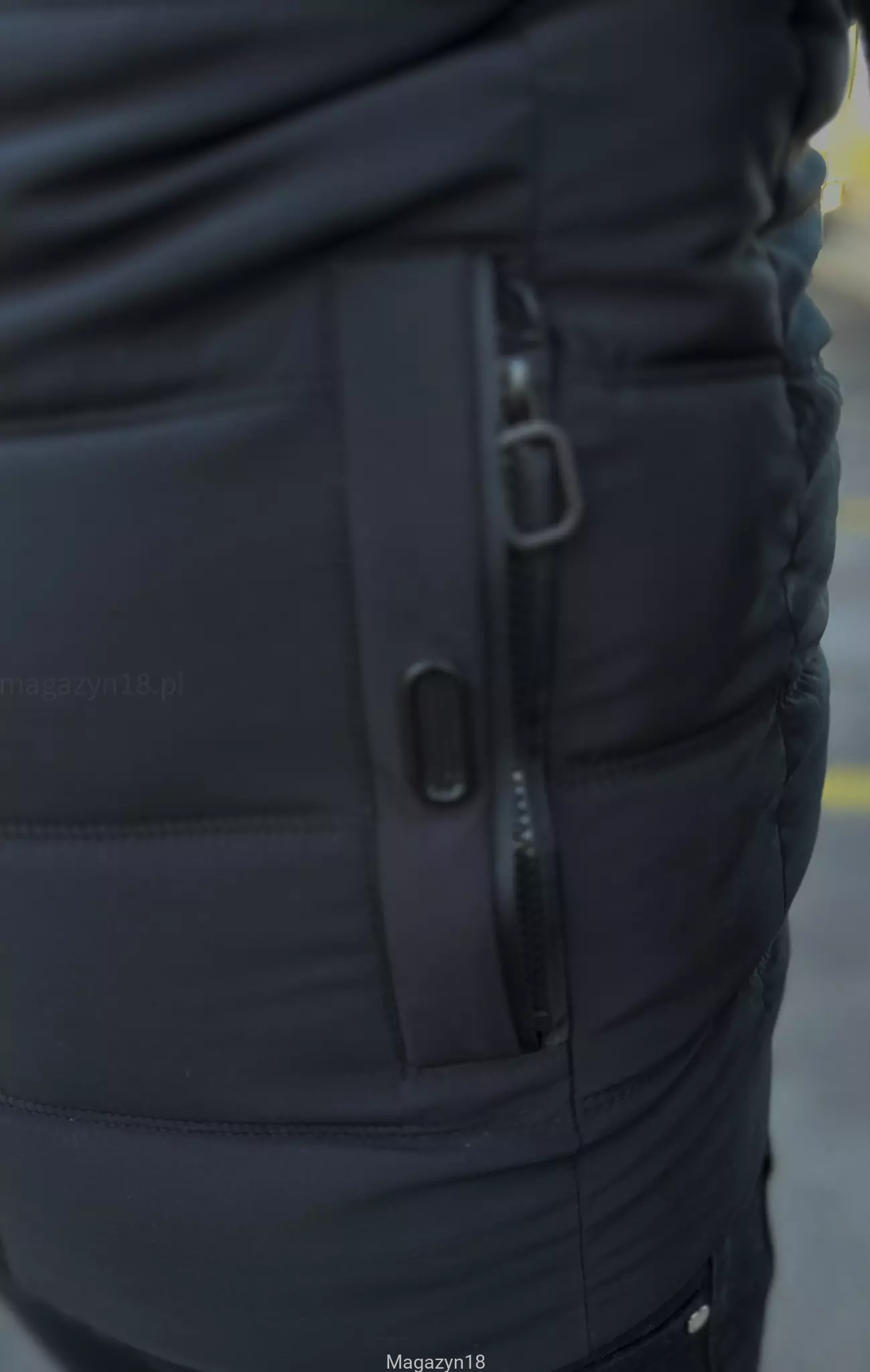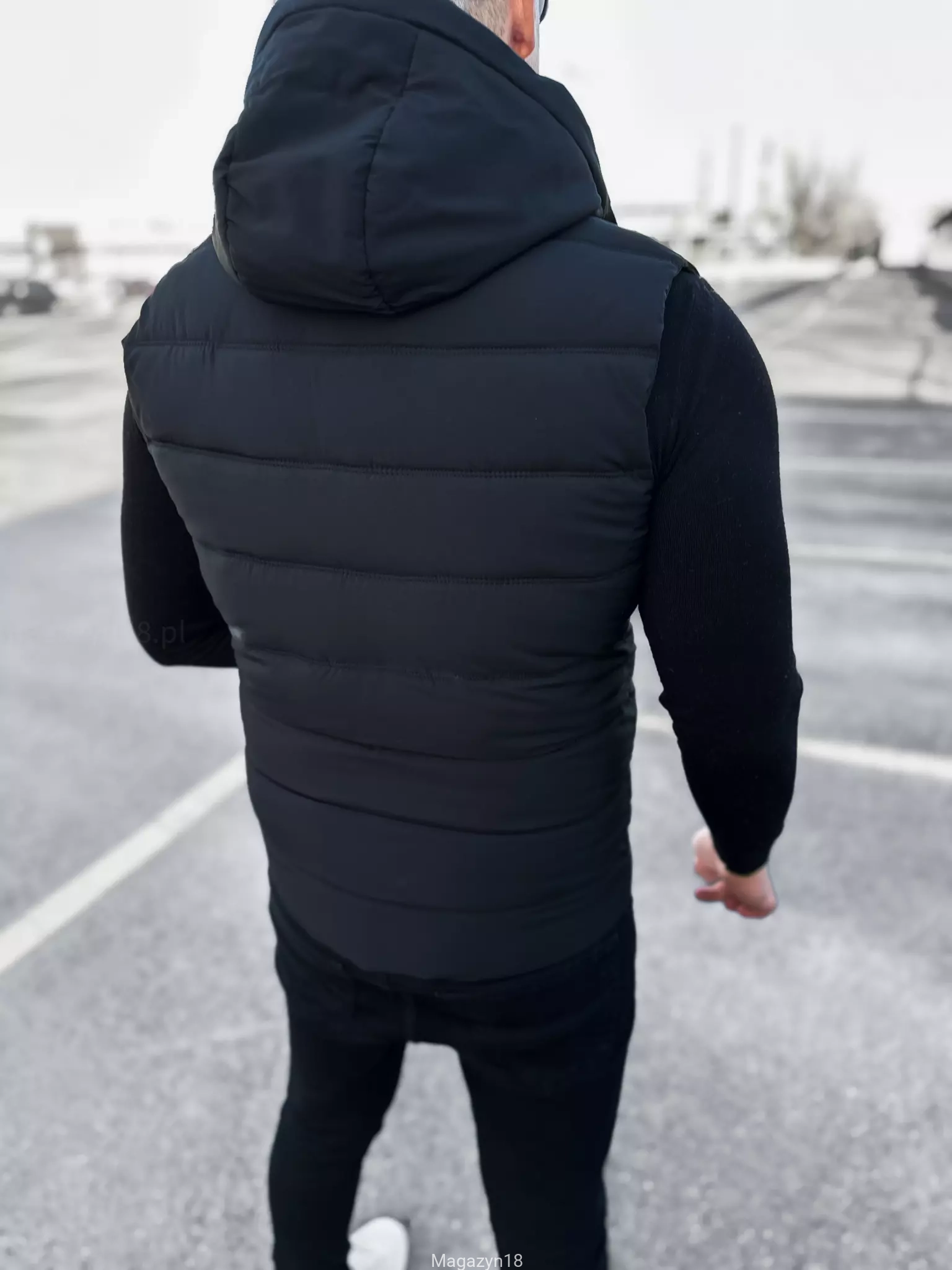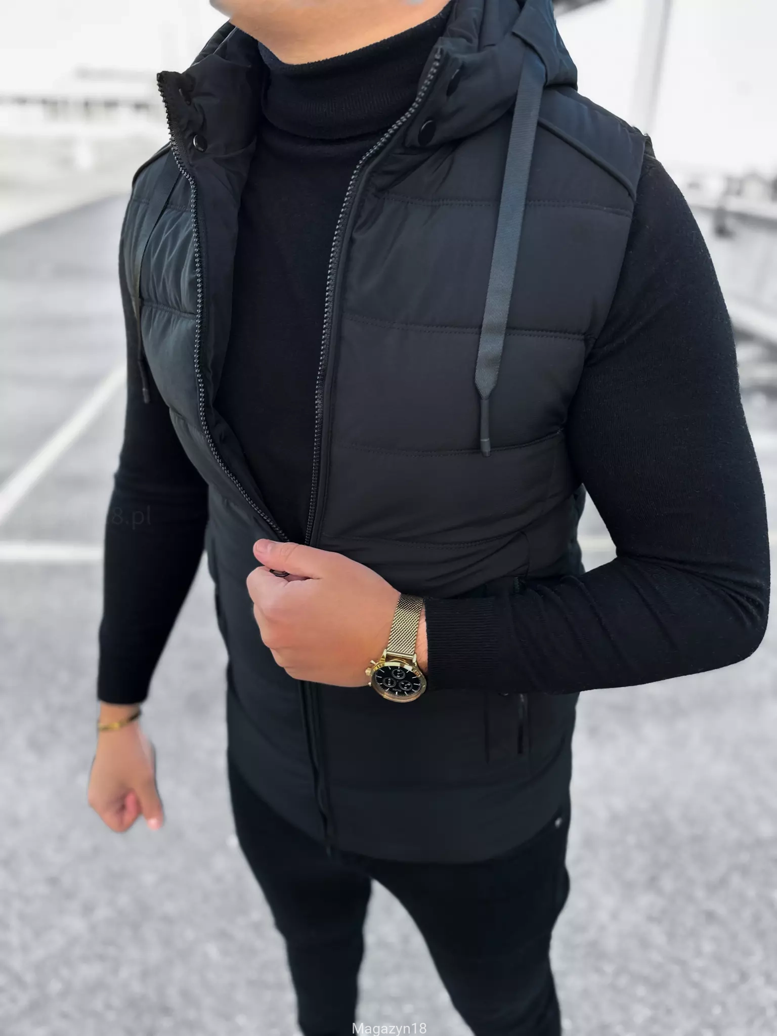 Kamizelka męska zimowa 75-07 czarna z odpinanym kapturem