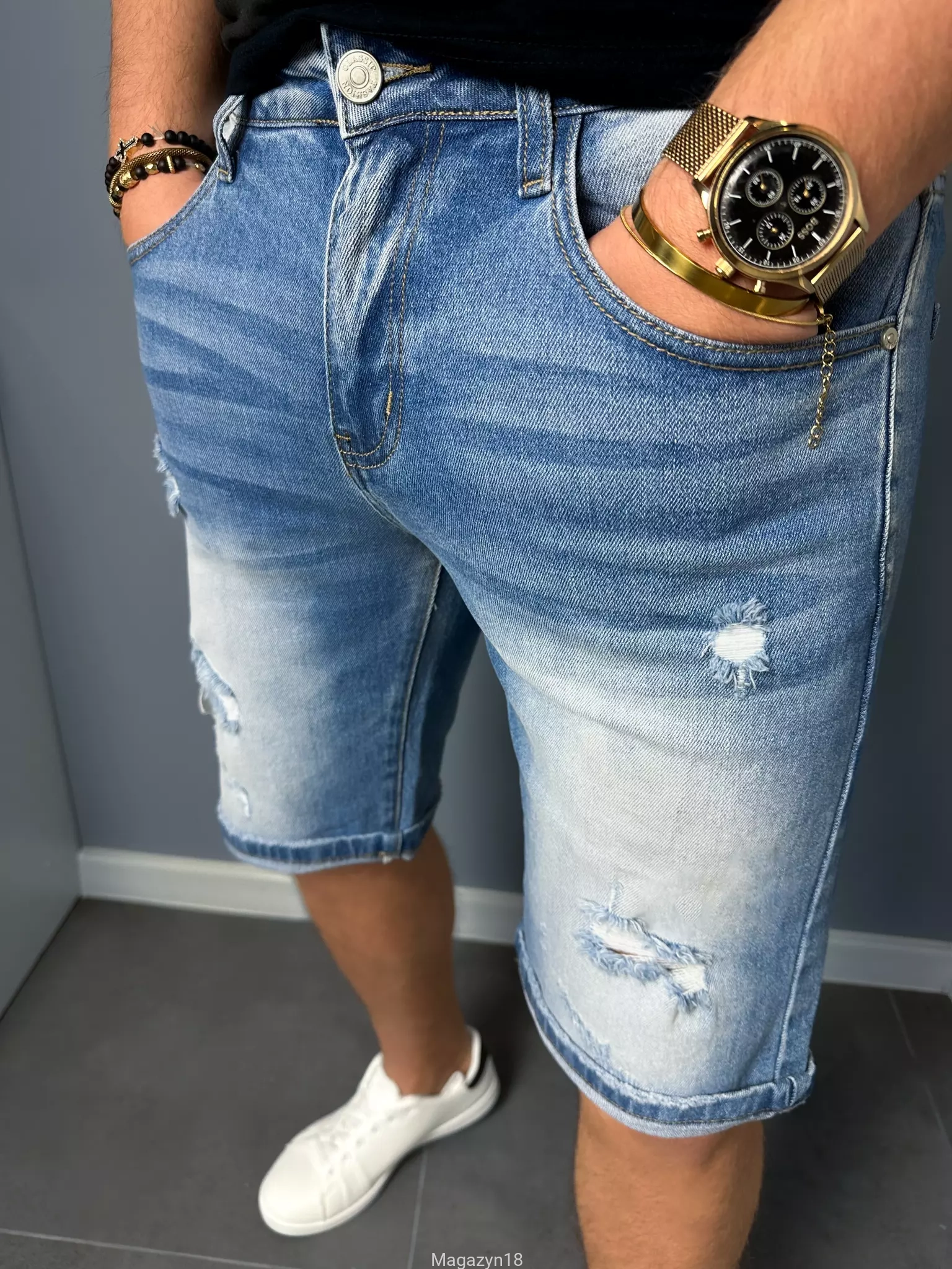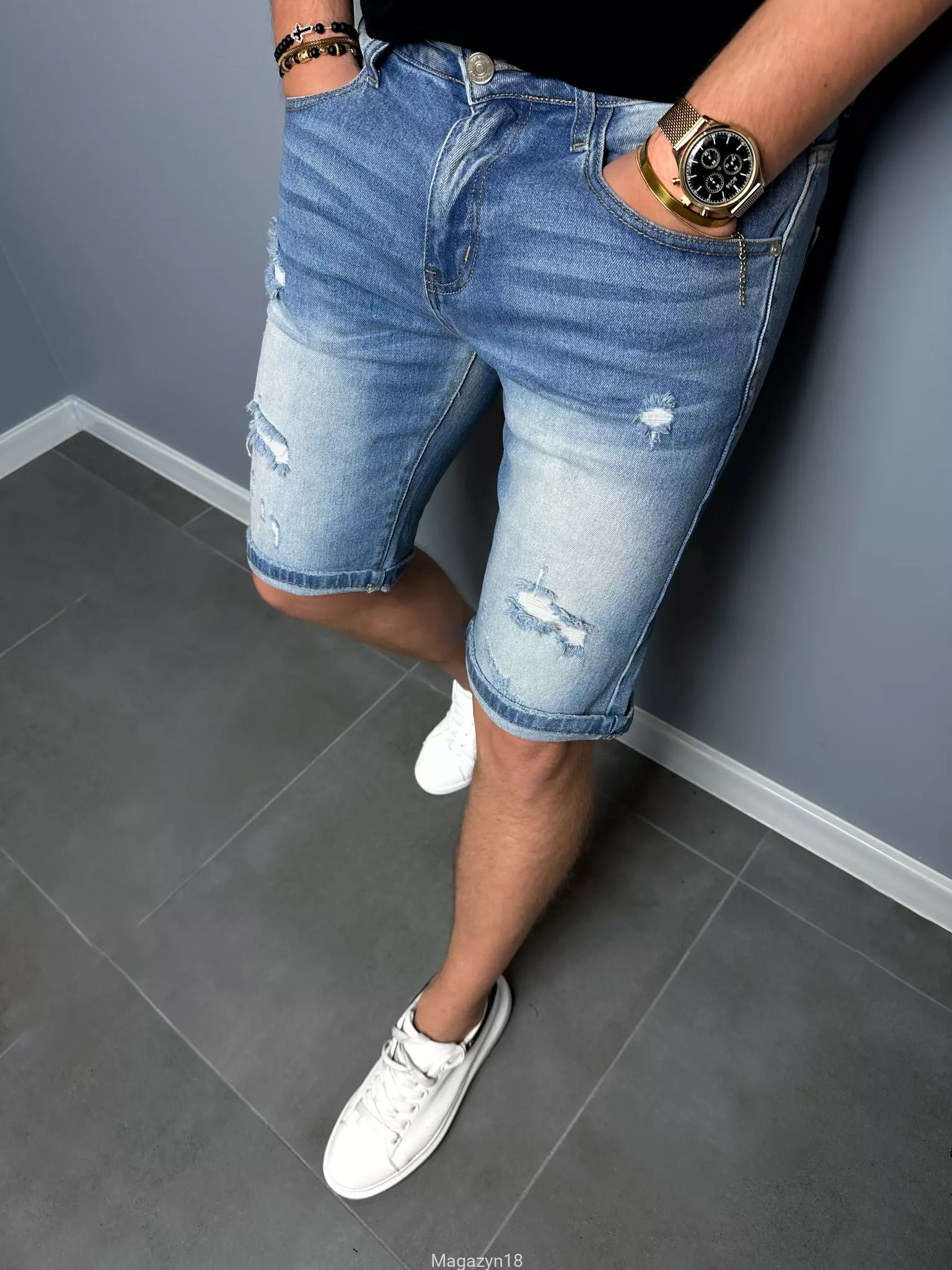 Krótkie spodenki jeansowe 577 rozciągliwe shorty z dziurami