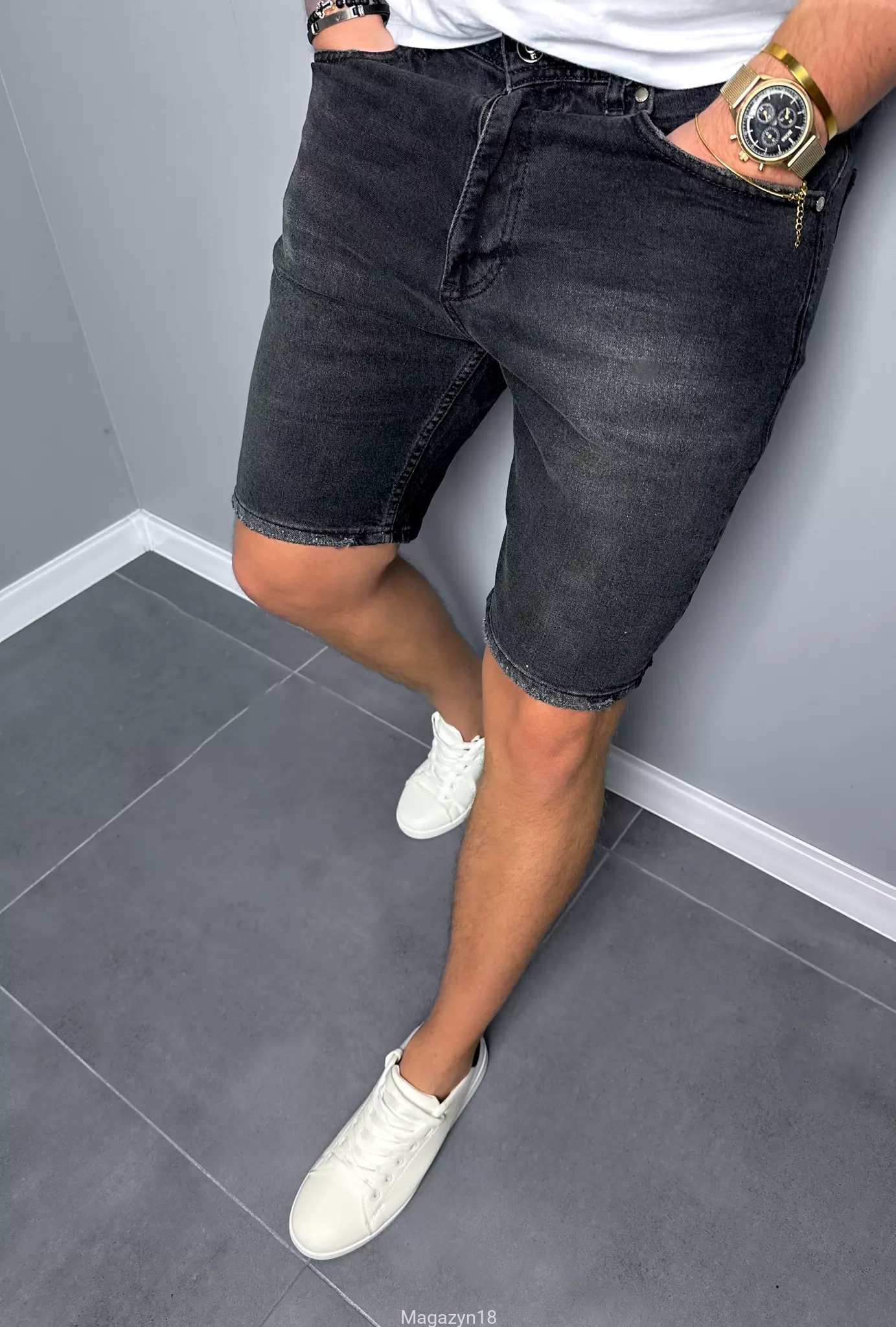 Krótkie spodenki jeansowe 80-68 shorty ciemno szare 8