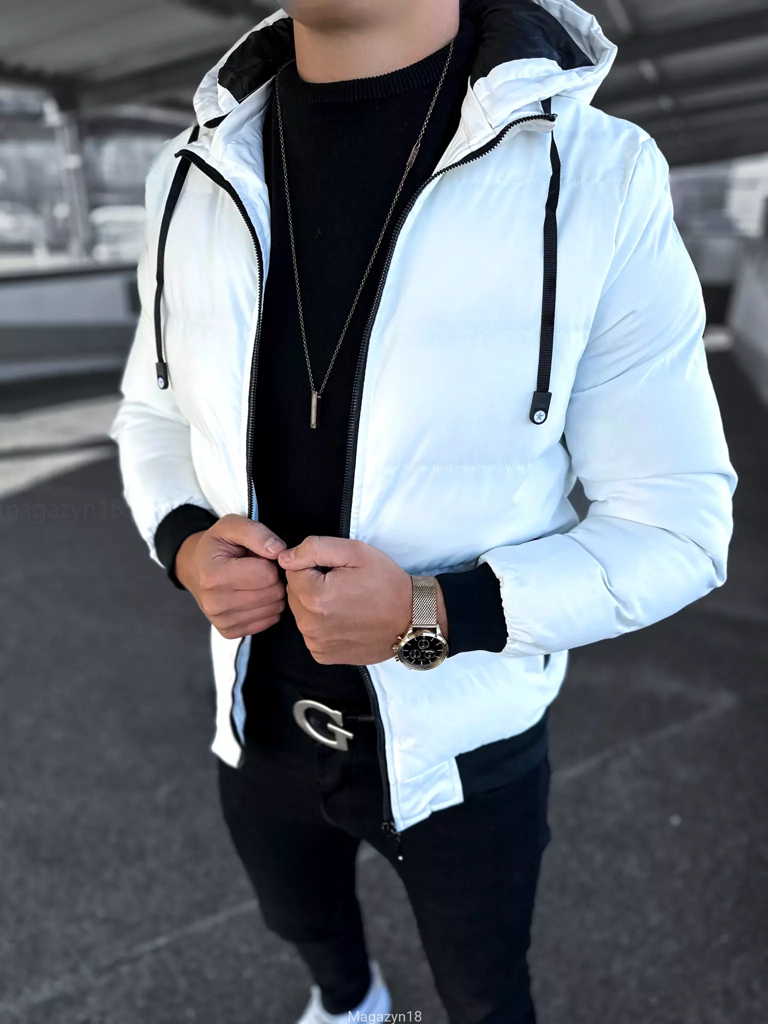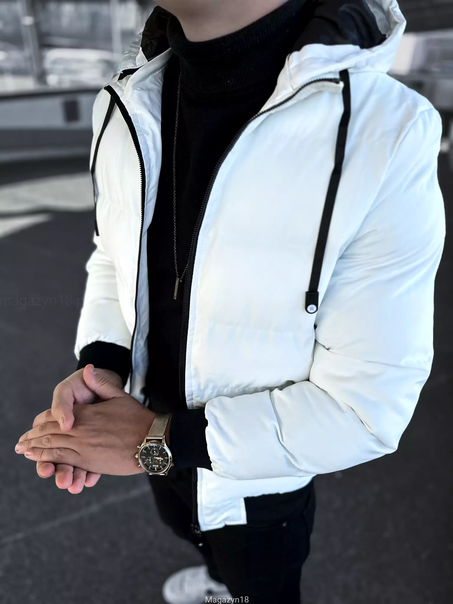 Kurtka zimowa męska z odpinanym kapturem 57-2 biała na zimę