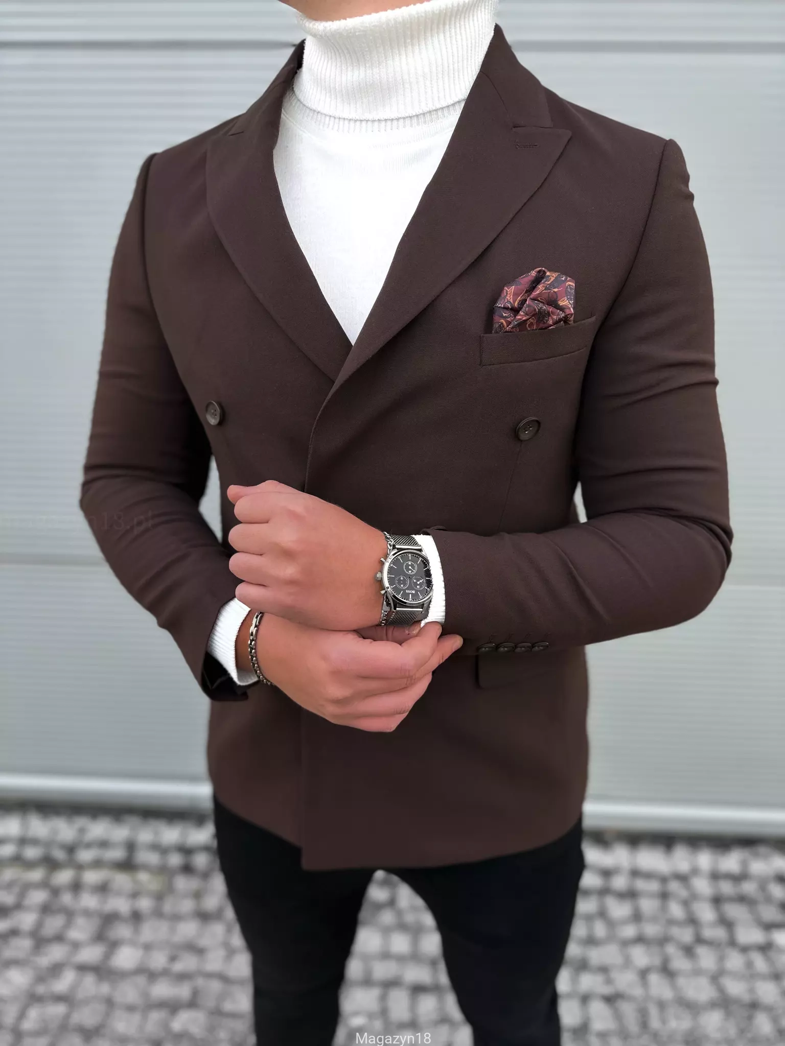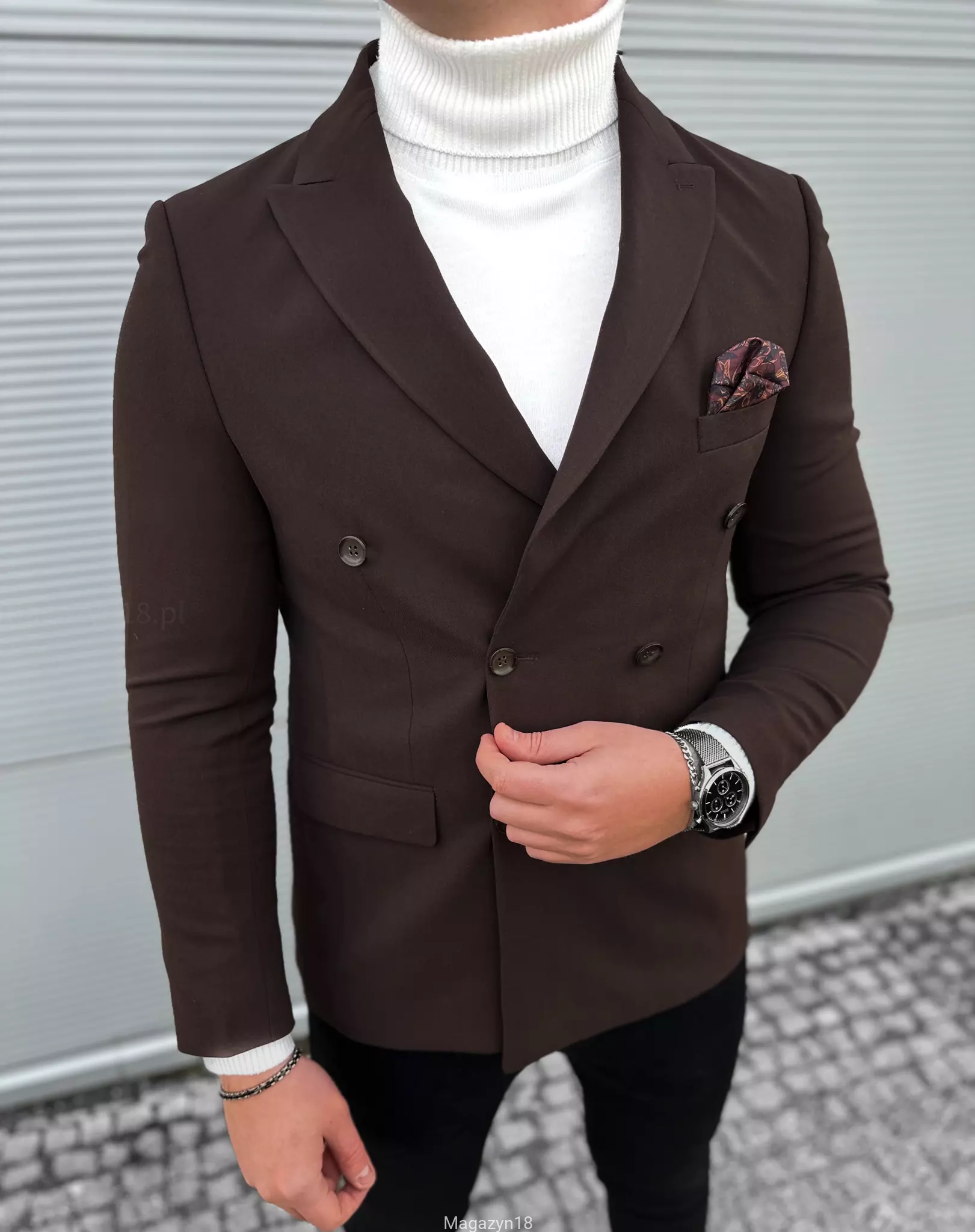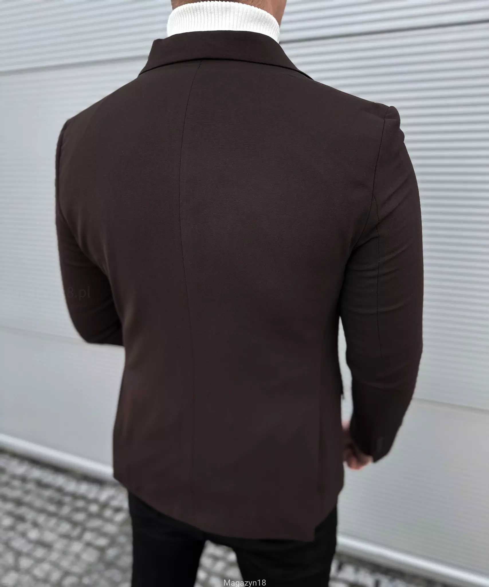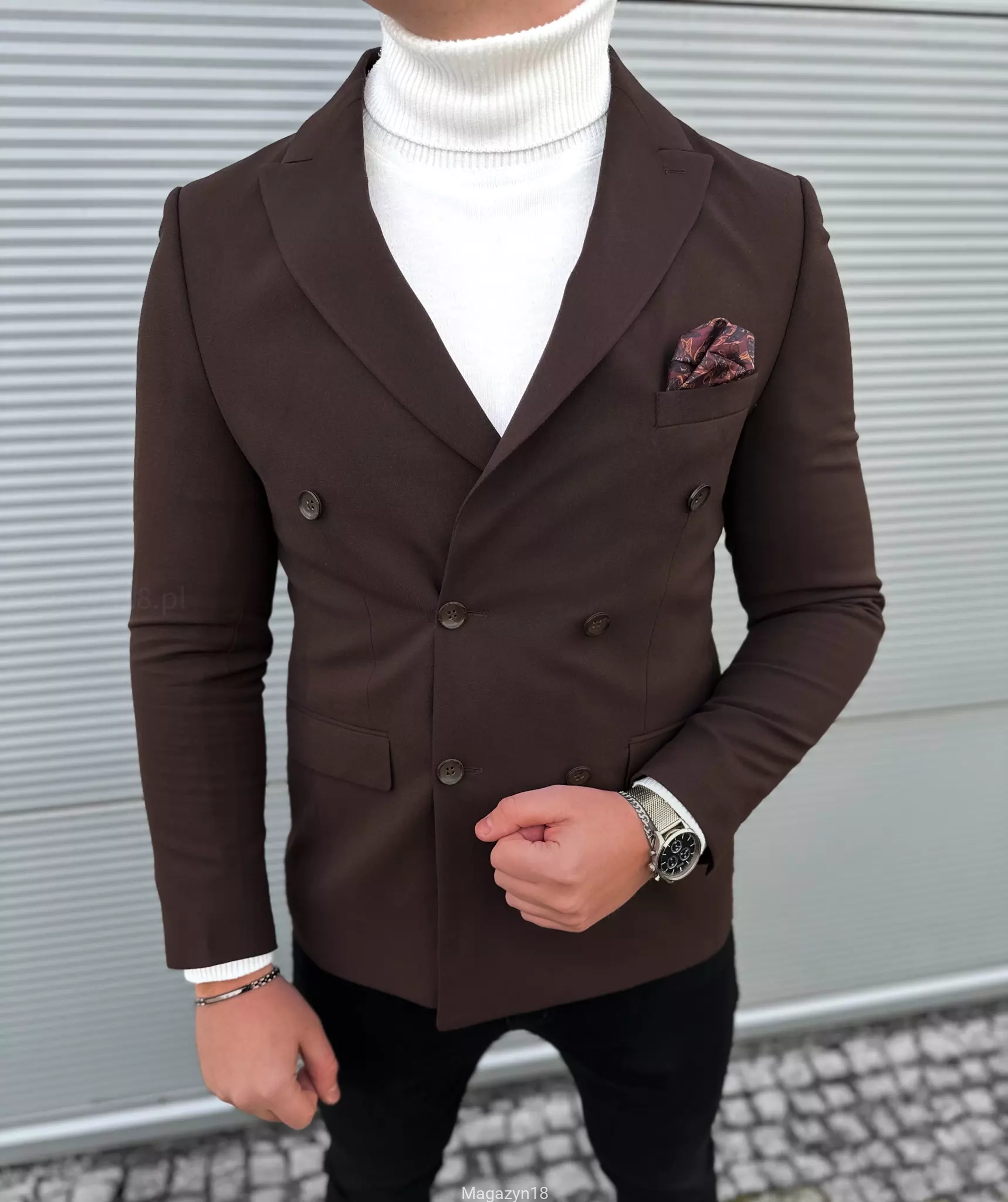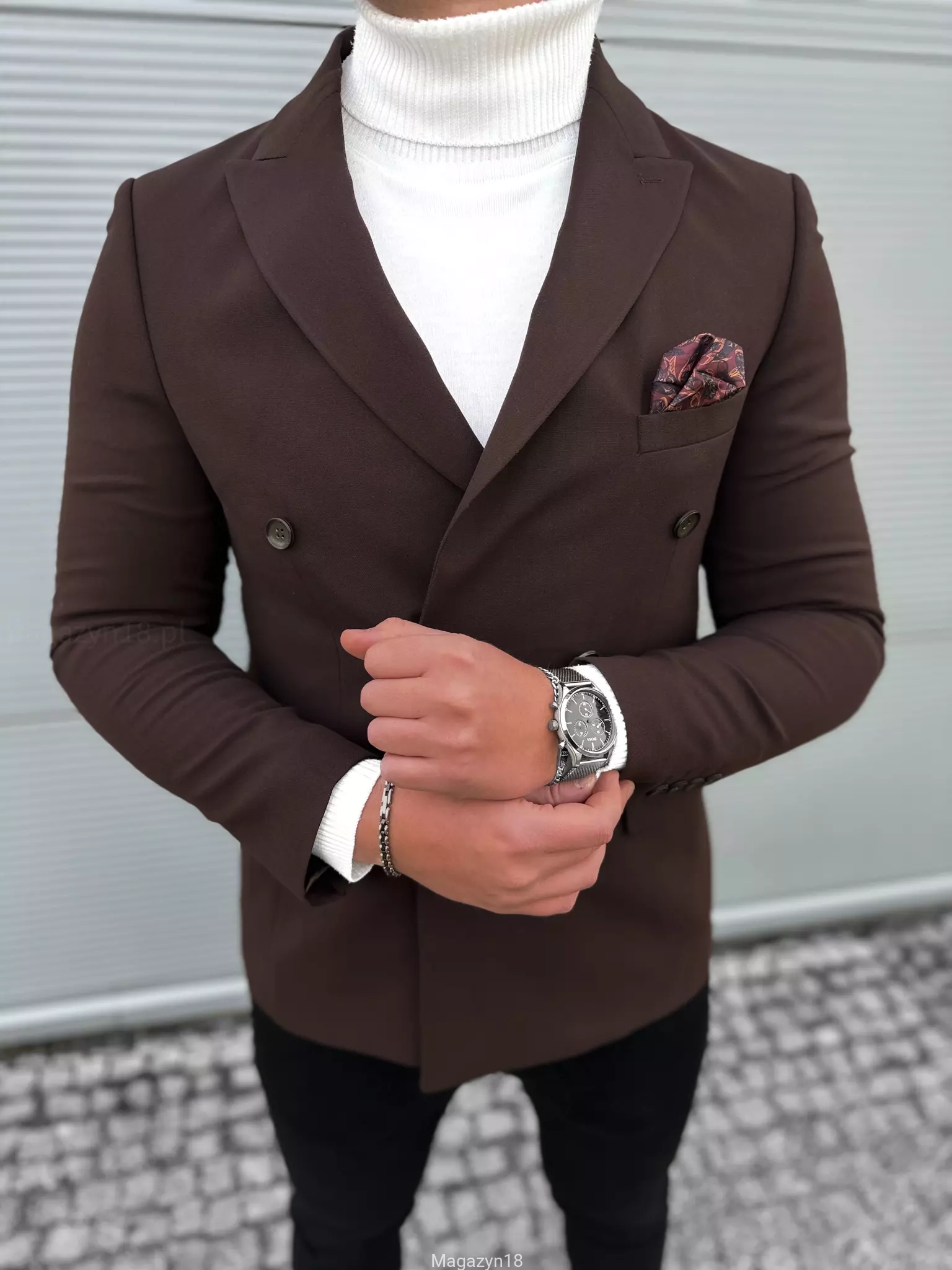 Marynarka dwurzędowa męska brązowa slim elegancka MD02 Premium