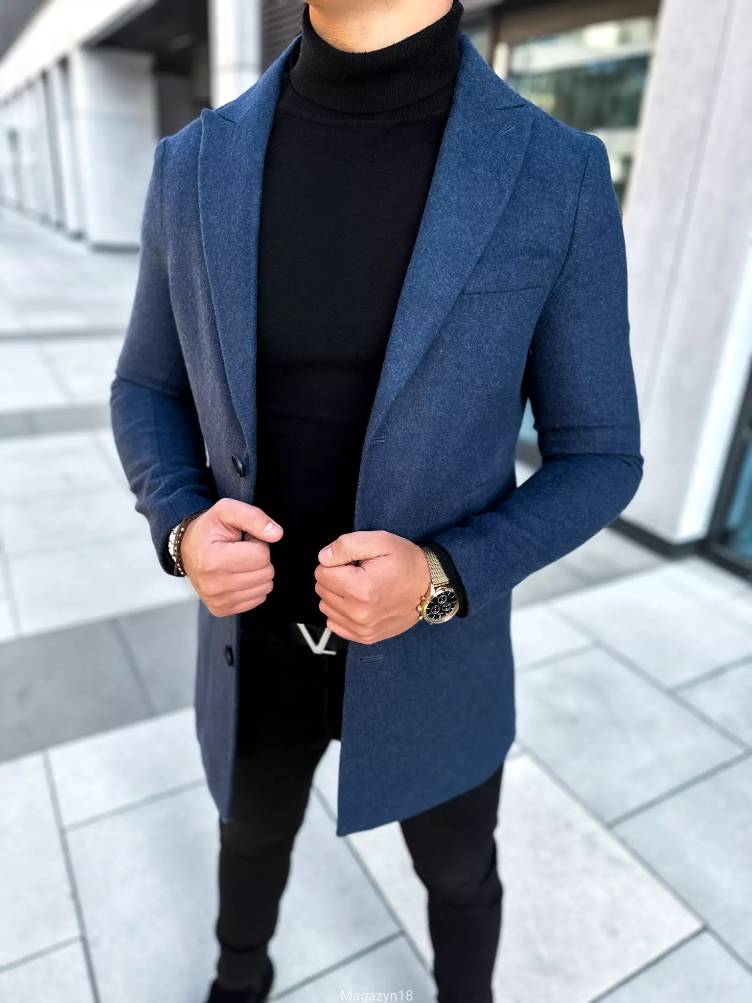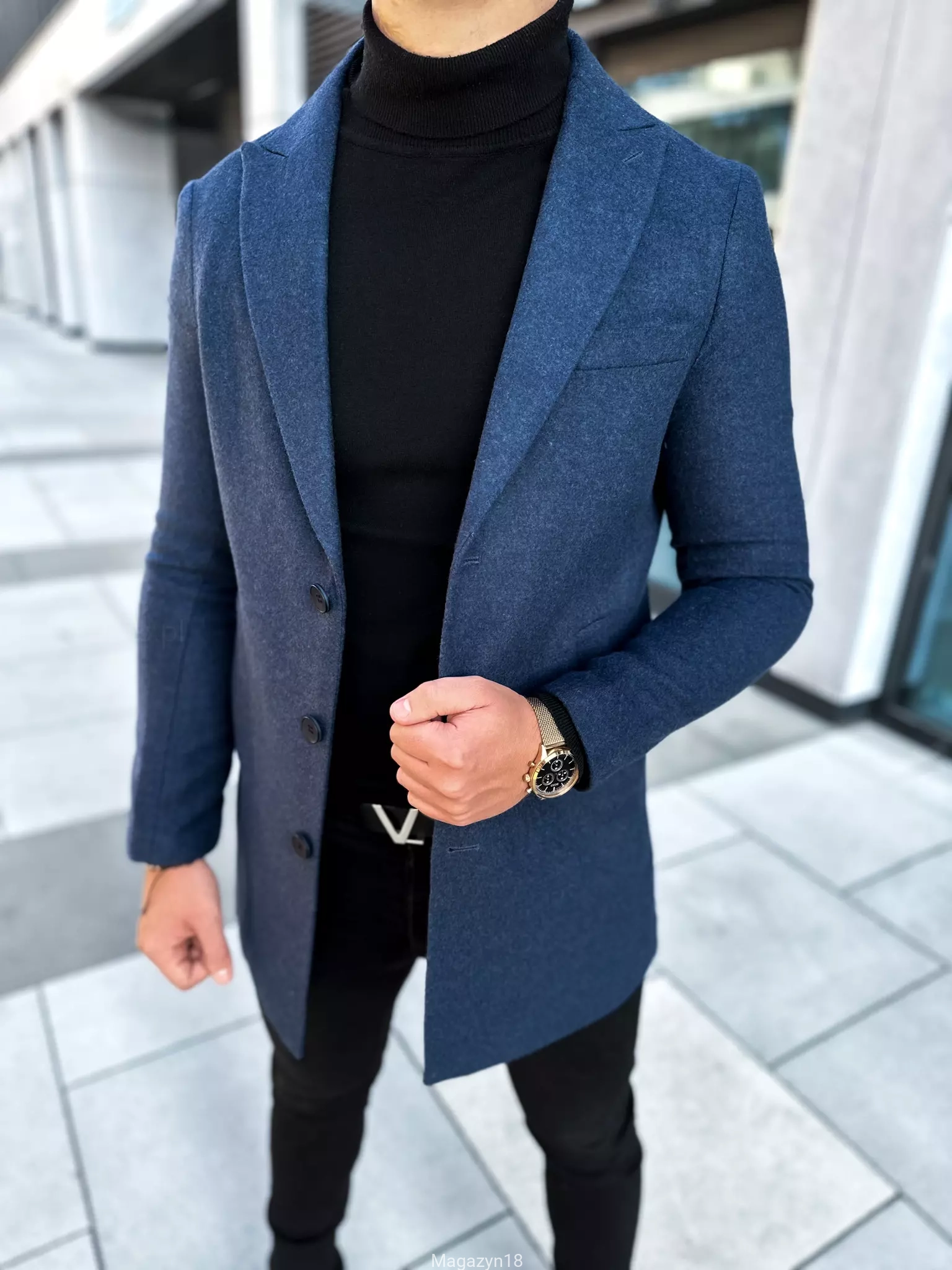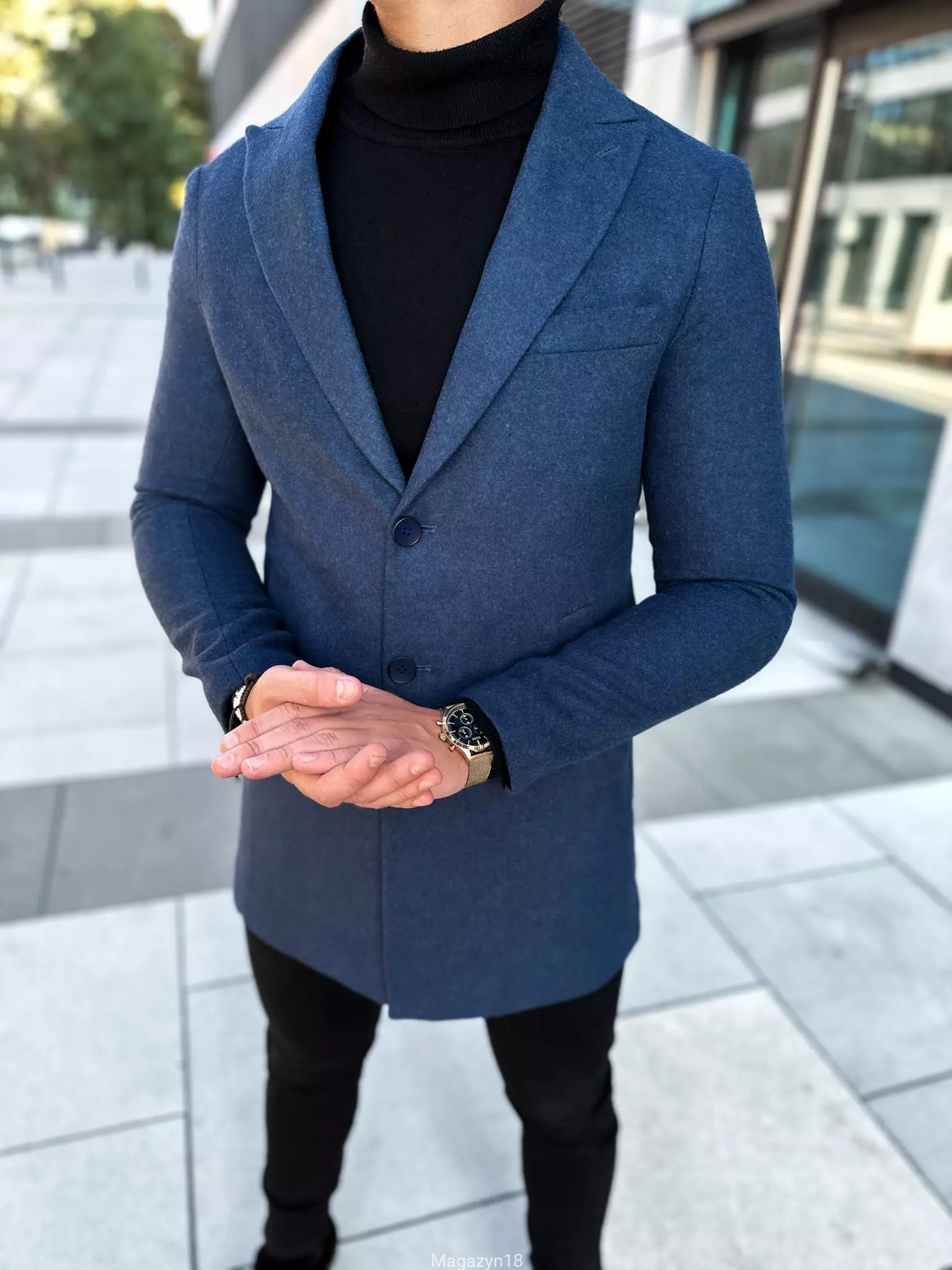 New 102n klasyczny płaszcz ciemno niebieski