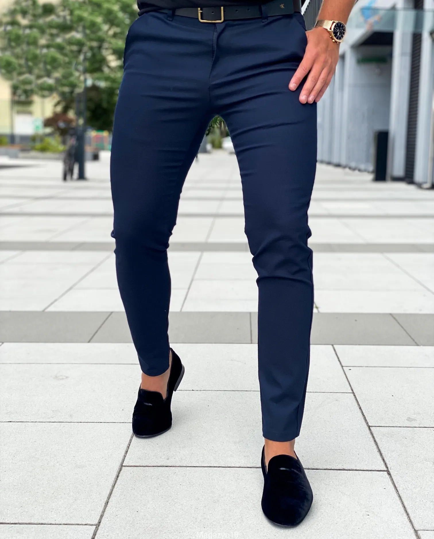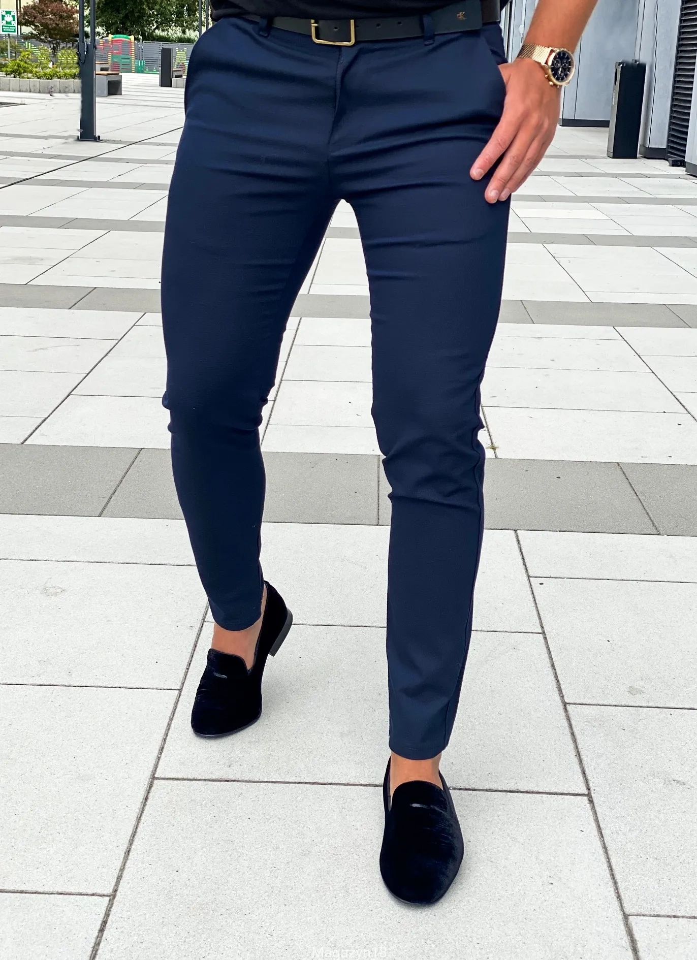 New M6 klasyczne spodnie chinosy granatowe MG18