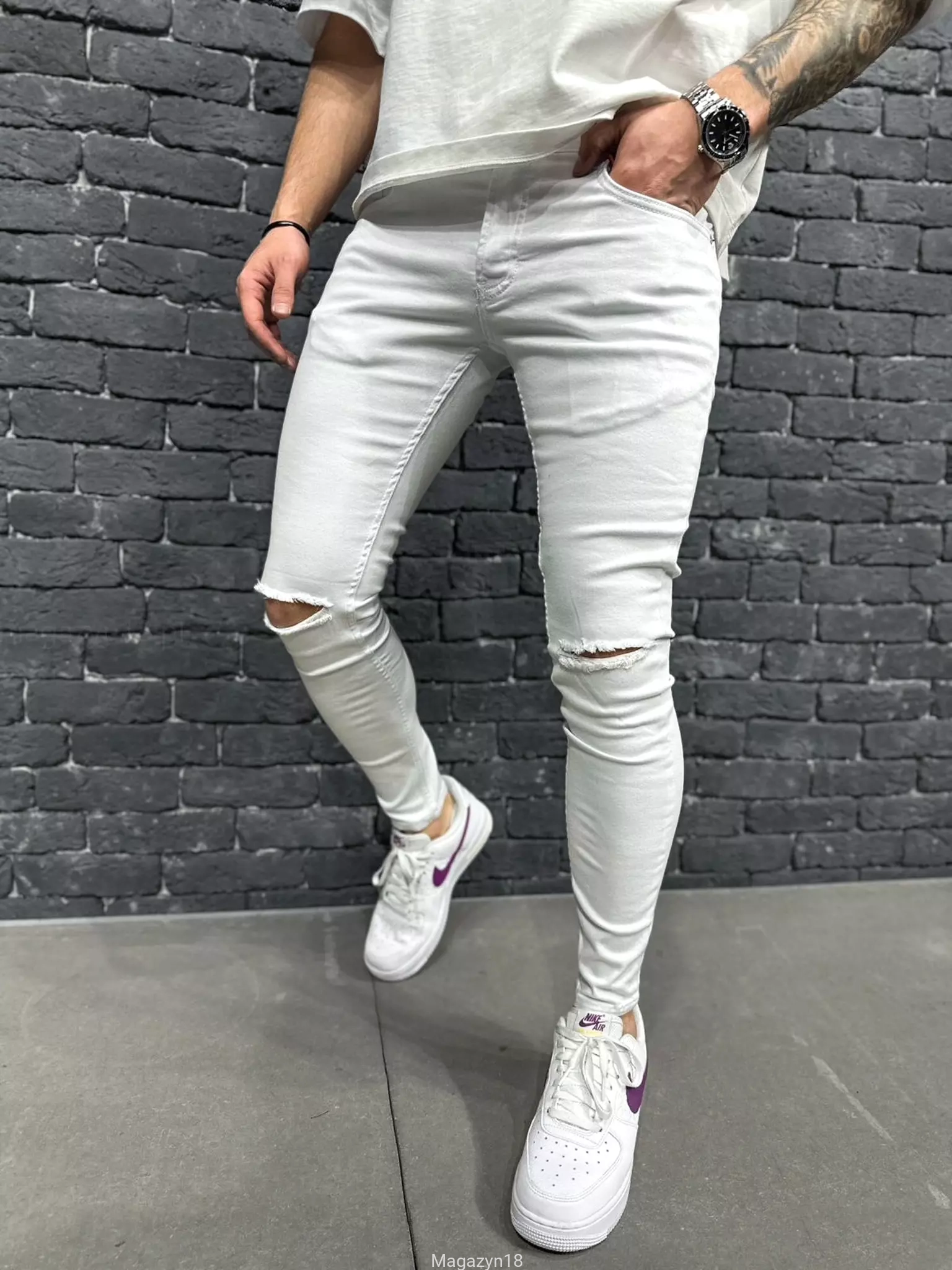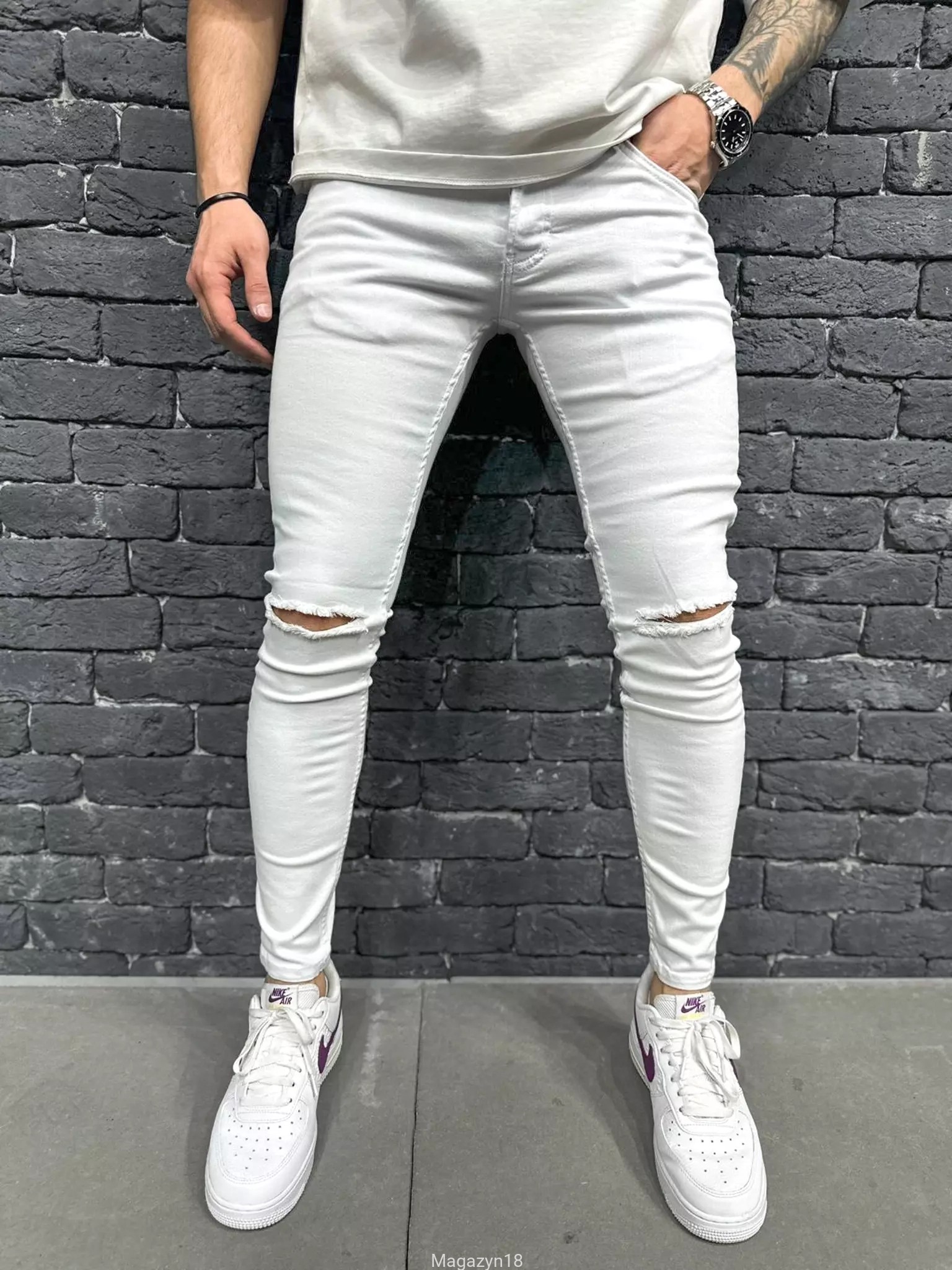 New jeans 9166 białe z dziurami premium