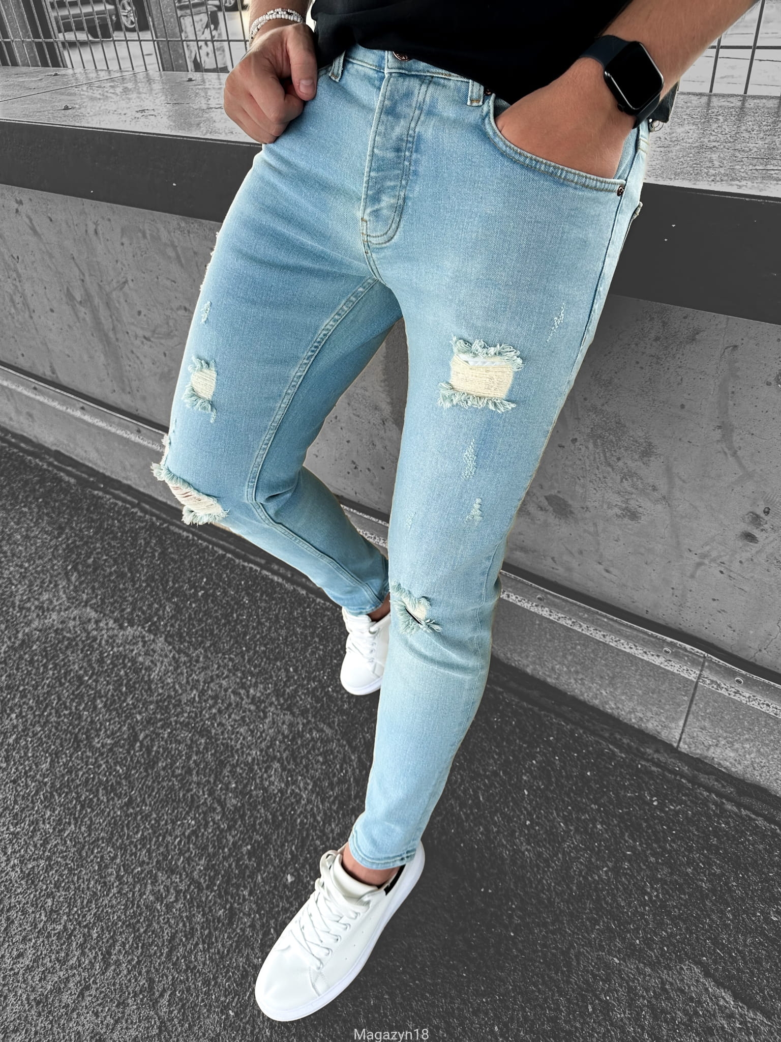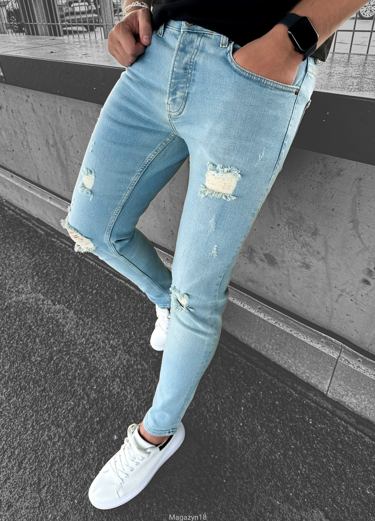 Prosimy pamiętać, że spodnie posiadają 3% lycry co powoduje, że materiał się rozciąga. Jeżeli masz problem z doborem rozmiaru napisz do nas na magazyn18@o2.pl lub na facebooku. Służymy pomocą!