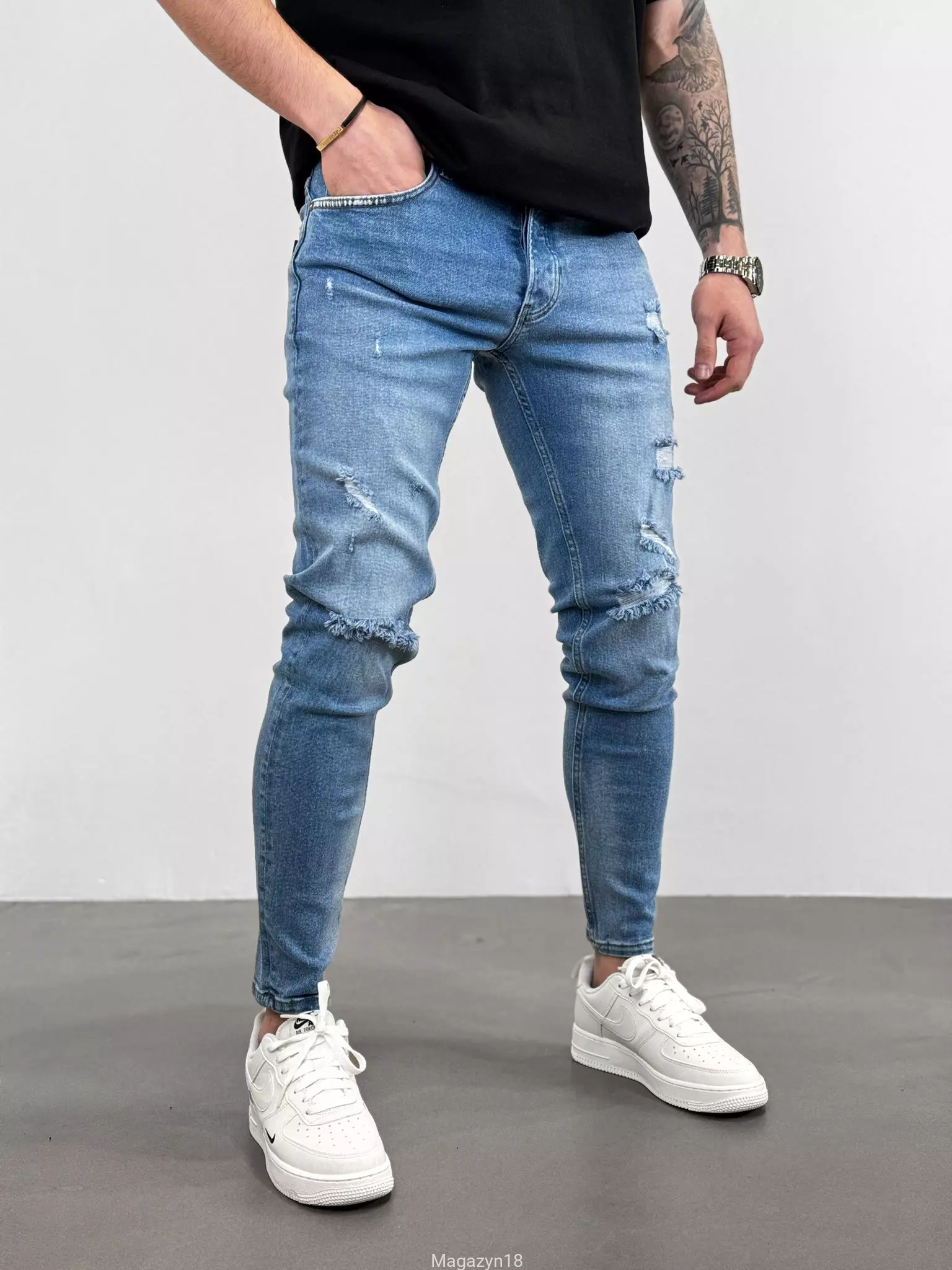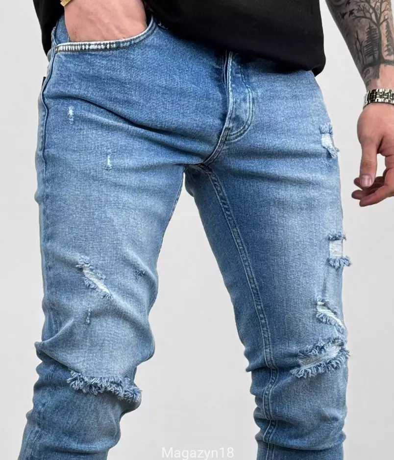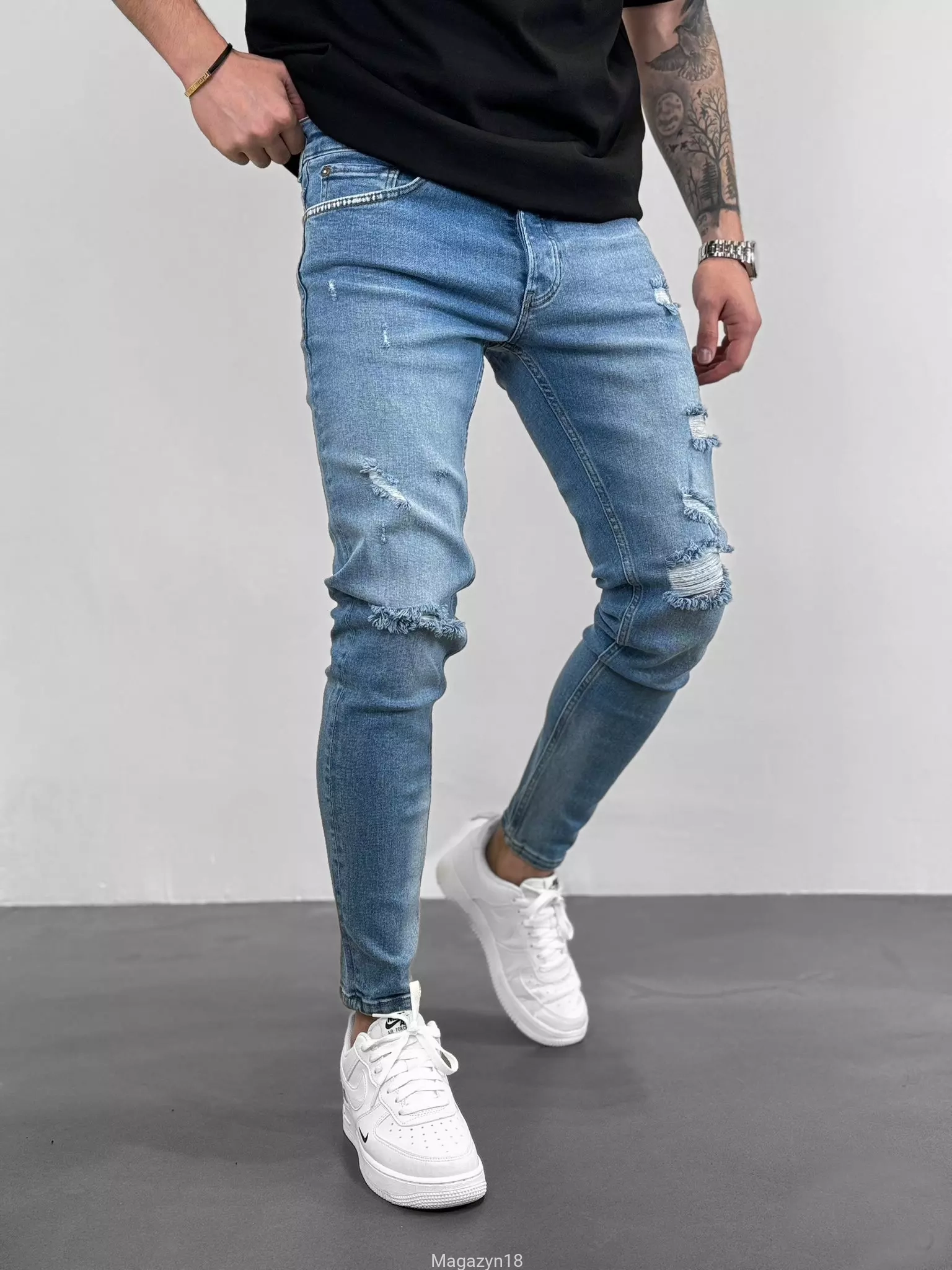 New jeans 9336 niebieskie z dziurami i przetarciami premium