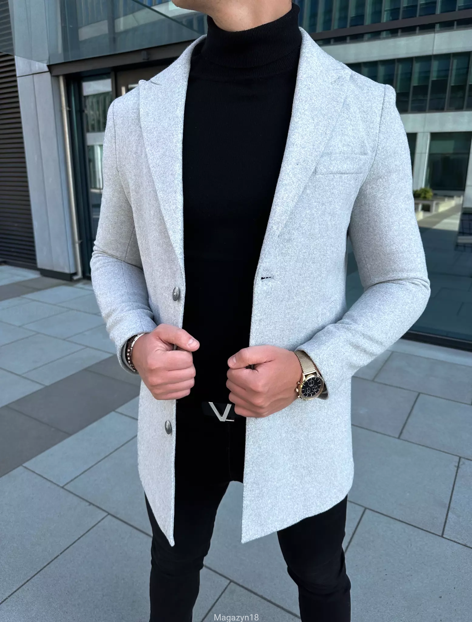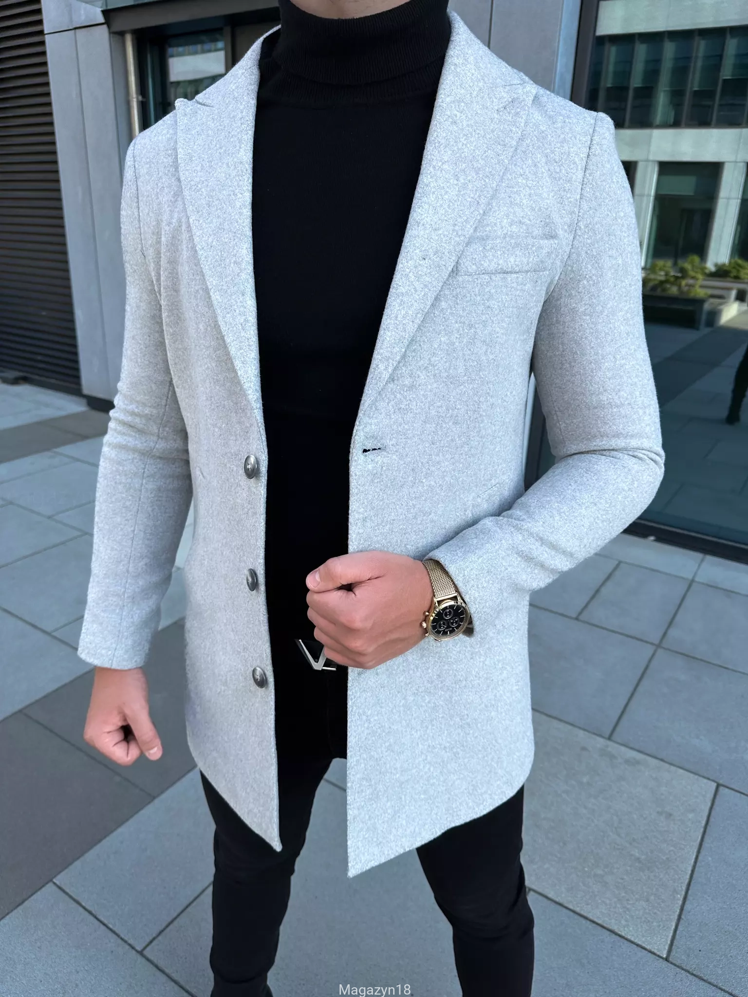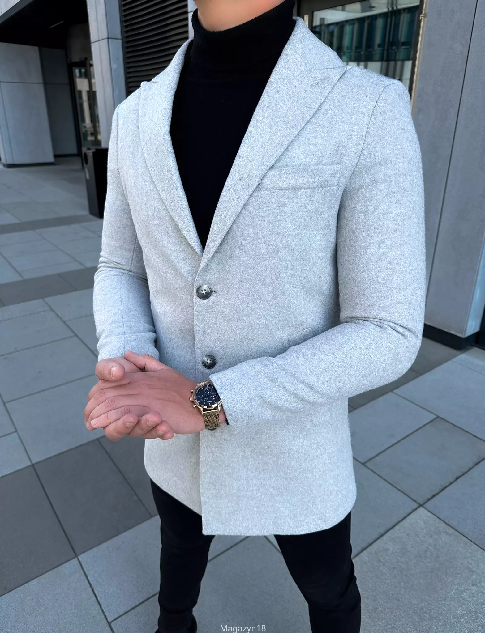 Płaszcz 102js klasyczny jasno szary