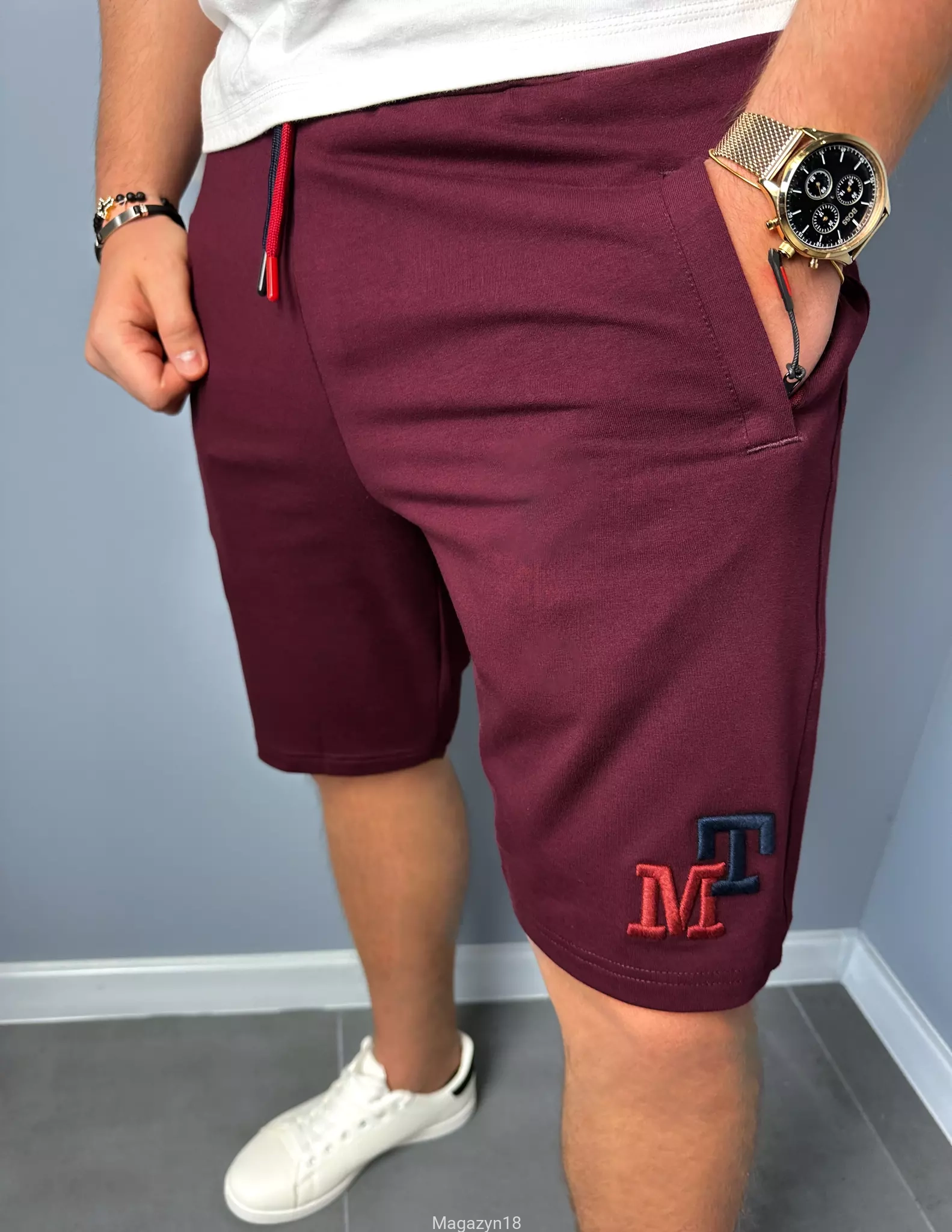 Spodenki 121b luźne krótkie shorty dresowe bordowe TM