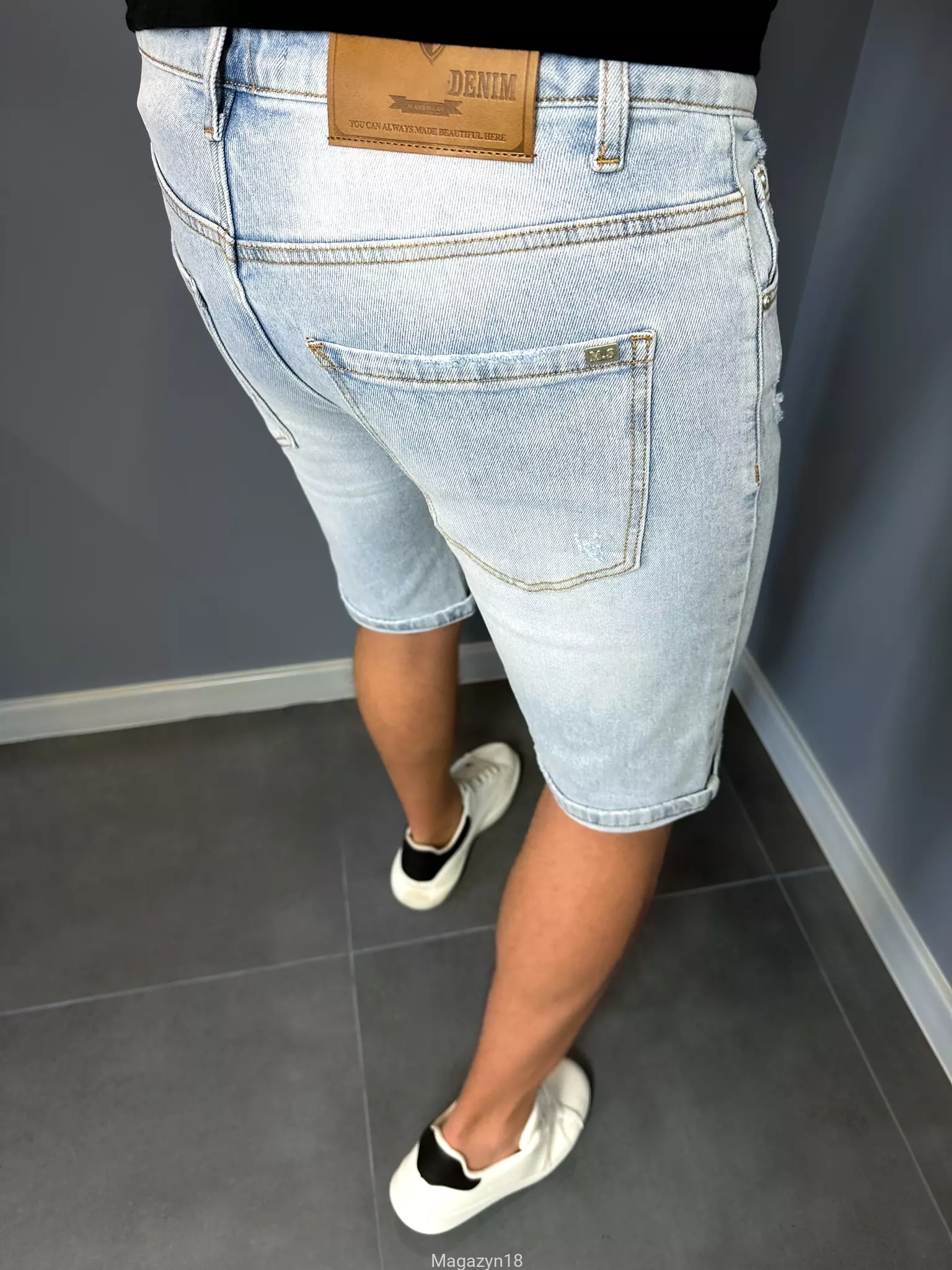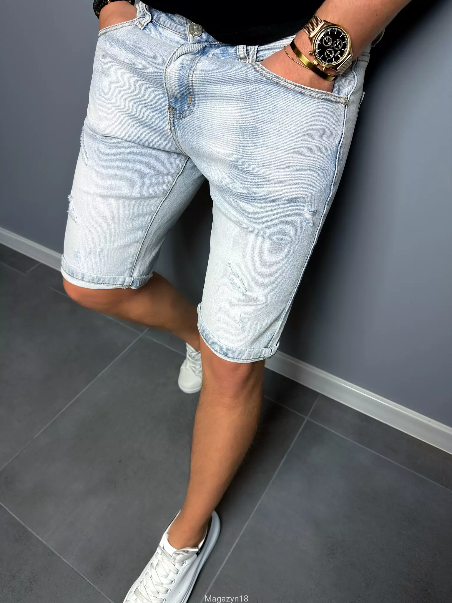 Spodenki jeansowe 5-79 krótkie rozciągliwe shorty z przetarciami