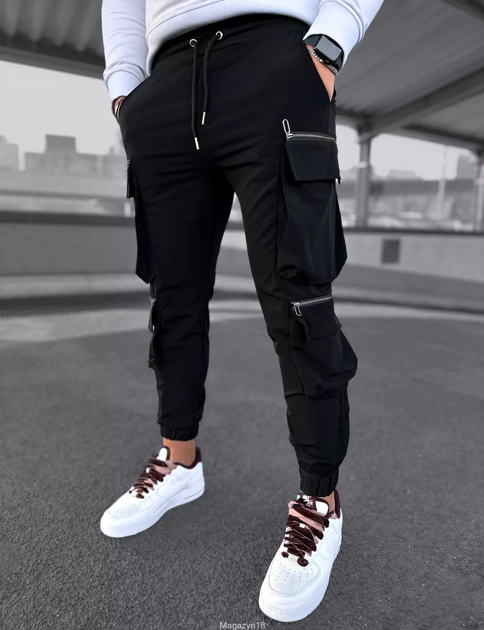 Spodnie dresowe bojówki męskie czarne joggery 5005c