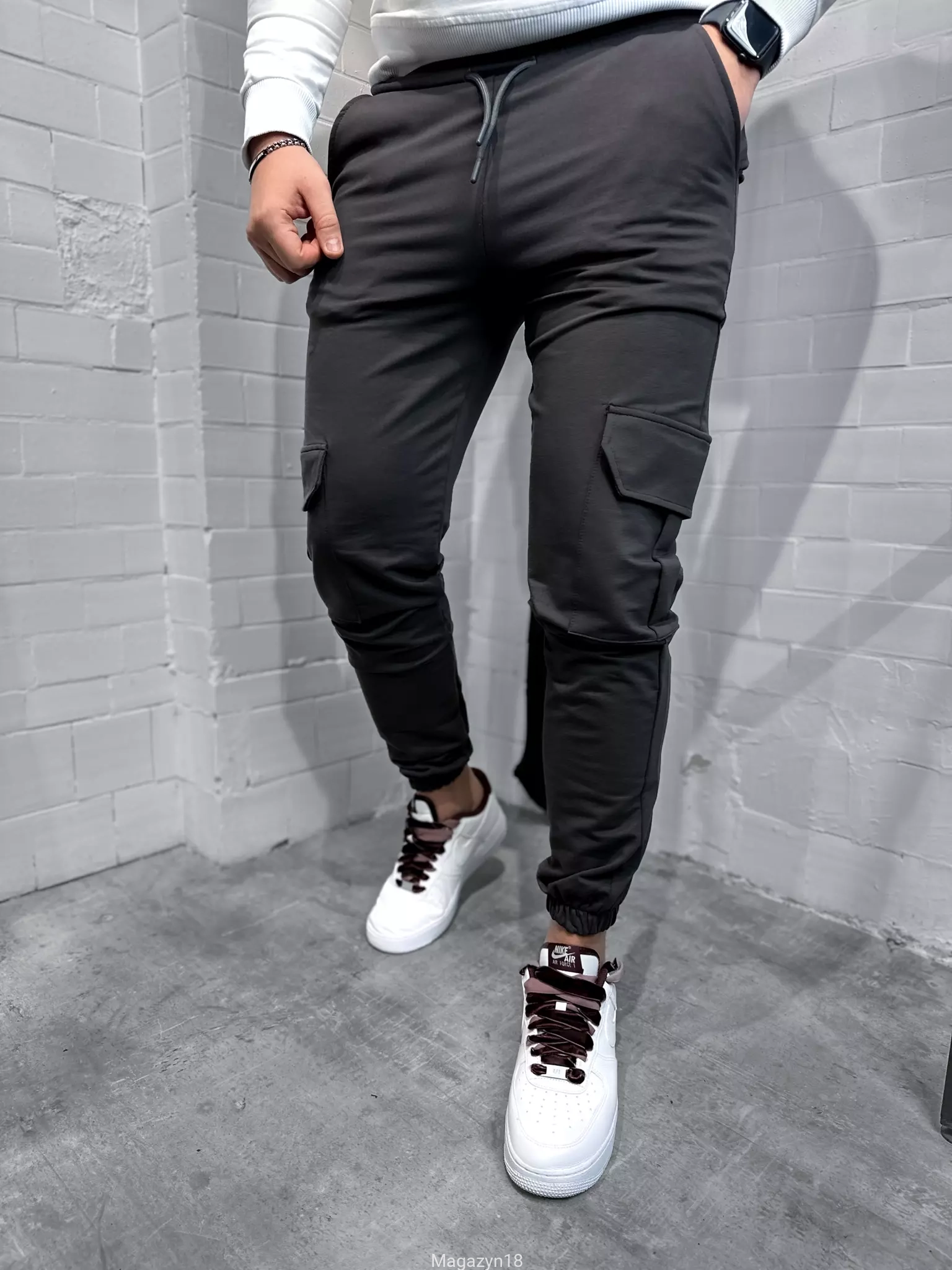 Joggery męskie 22-07 spodnie elastyczne ciemno szare rozciągliwe jeansowe