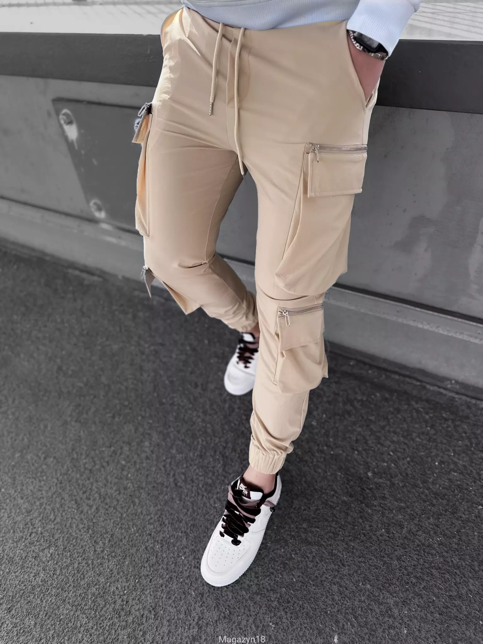 Spodnie męskie 4009r elegancko-dresowe pudrowy róż