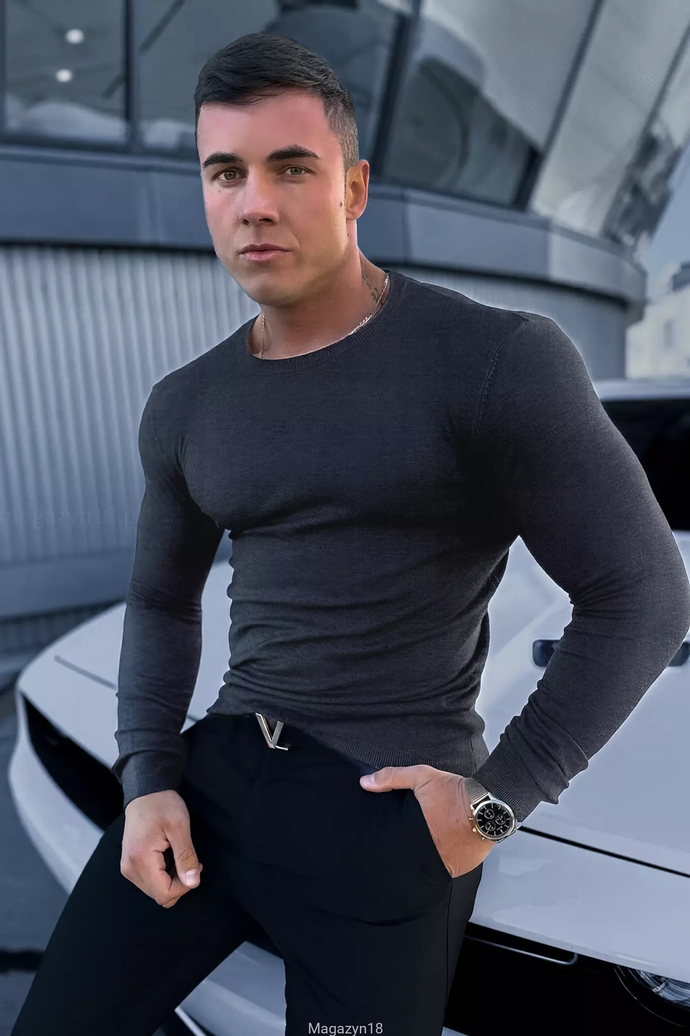 Sweter męski ciemno szary 6-3 Slim dopasowany i elastyczny